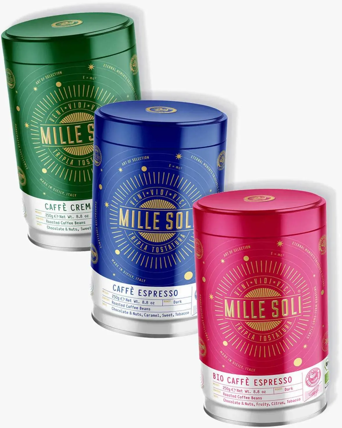 47.6 / 1 kg - MilleSoli - EAN: 04260680415167 - oder in der French Press. Mille Soli sorgt, als Marke von Caff Cultura, seit über 10 n für einen absoluten Kaffee-Genuss und steht vor allem für italienischen Traditionskaffee. Caff Cultura konnte neben dem Top100 Award auch viele weitere Auszeichnungen erlangen. - bei roastmarket.de - aus Yadore Produktdaten Eine hochwertige 250g Packung Espressobohnen, die traditionell in Sizilien geröstet werden. ![]() ![]()
