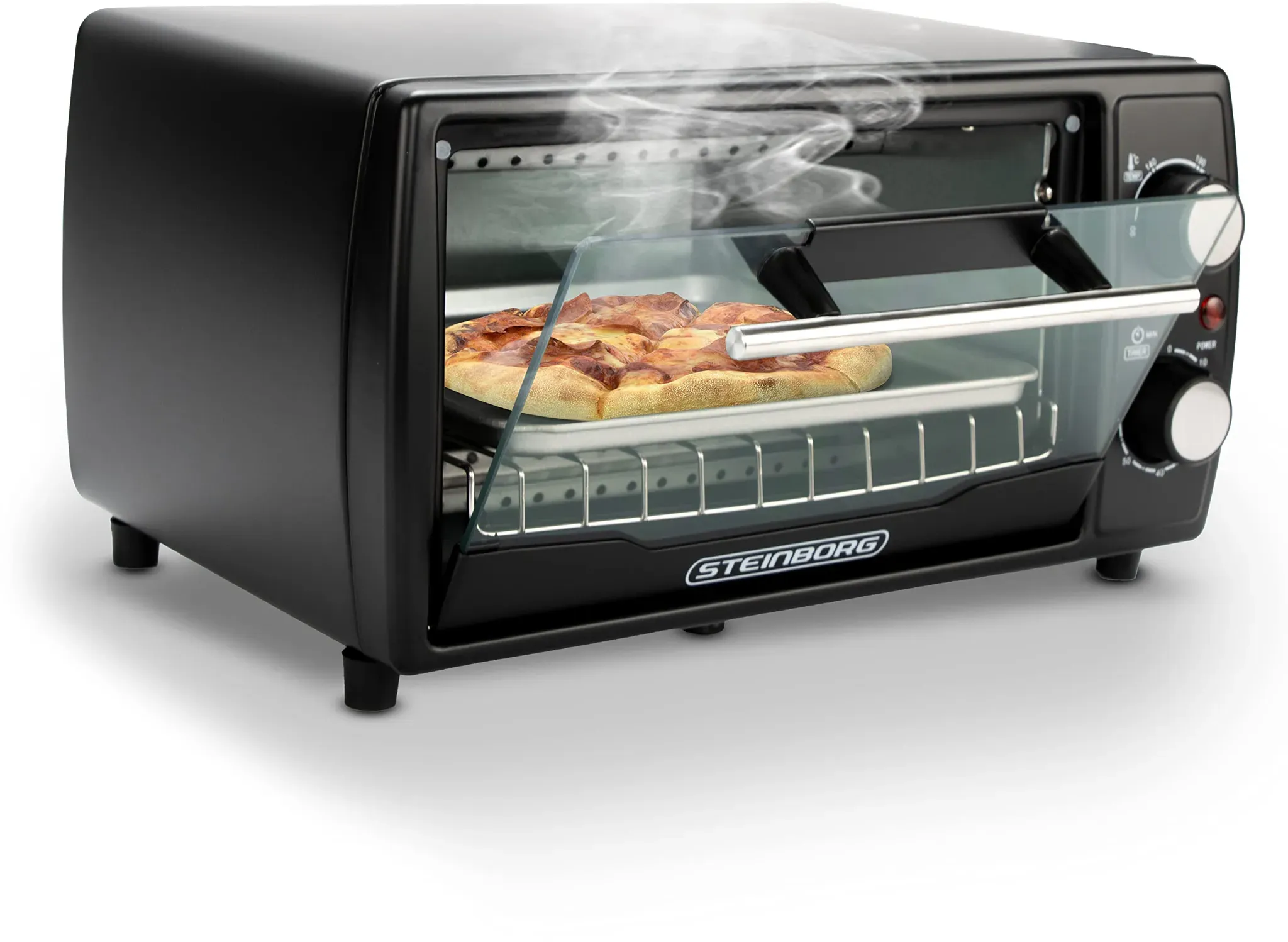 Zustand: Neu - Mini-Öfen - Clatronic - 264561 - EAN: 4006160645613 - Die perfekte Ergänzung €” Der Mini-Backofen MB 3746 von Clatronic steht herkömmlichen Backöfen und Mikrowellen in Nichts nach und sollte in keinem Haushalt fehlen. Mit der Ober-/ und Unterhitze, zwei Quarz-Heizelementen sowie zwei variablen Einschubhöhen gelingen leckere Aufläufe, Kuchen, Pizzen oder andere Ofen- und Backgerichte. Garraumgröße €” Der Garraum mit 8 Litern Fassungsvermögen ist kompakt und bietet eine optimale Größe für verschiedene Gerichte. Top Features €” Zusätzlich punktet das Gerät mit einem 60 Minuten-Timer, einer stufenlosen Temperaturregelung (100°C - 230°C) und einer doppelverglasten Türe mit großen Sichtfenster. Inklusive €” Im Lieferumfang enthalten: Grillrost, Backblech, Zange zur Entnahme, Krümelblech. - 9 Händler im amazon.de Marketplace Dieser Mini-Backofen ist eine sehr preiswerte Option für grundlegende Back- und Toastfunktionen. ![]() Steinborg Minibackofen 10L Pizzaofen 60 min. Timer 1000W schwarz