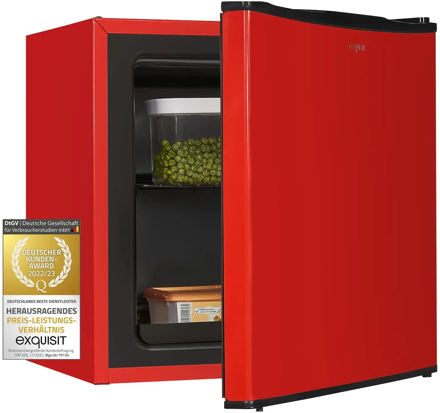 EEK: E - Kategorie: Gefrierschränke - CHiQ - GTIN:8592344703096 - Der kleine CHiQ-Kühlschrank bietet 31 Liter Fassungsvermögen und nimmt dabei nur wenig Platz in Anspruch (474*447*496 mm). Passt leicht auf eine Tischplatte, Schlafzimmer, Schlafsaal, Büro und so weiter. Beweglicher Drahtboden für eine effiziente Organisation des Inhalts und das Gittermuster verhindert, dass kleinere Gegenstände durchfallen. Die ideale Größe für die Aufbewahrung von Eiswürfeln und Tiefkühlkost. Features mit 5 Klasse Thermostat Kontrollen von Kühlschrank zu Gefrierschrank. Zertifizierte 4 Sterne Gefrieren Ihre fronzen Lebensmittel gut und stabil zu halten, 1 bis 5 Klasse ist zwischen -18 C und -24 C. Der flache Türgriff und die flache Rückseite machen ihn auch für Ecken und kleine Räume geeignet. Und mit den umkehrbaren Türen können Sie ihn nach links oder rechts ausrichten. Er erfüllt die E-Energy-zertifizierten Standards für niedrigen Energieverbrauch und ist außerdem leise(41db). - 109,99 Euro bei Amazon Marketplace CE - gefunden von billiger.de Der Exquisit Mini-Gefrierschrank in Rot mit 31L ist eine kompakte und farbenfrohe Option für kleine Mengen Gefriergut. ![]() ![]() Exquisit Mini-Gefrierschrank GB40-150E rot PV | Mini Gefrierschrank klein 31 L Volumen | 4 Sterne | Tiefkühlschrank klein & kompakt