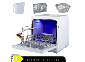 EEK: D - Kategorie: Geschirrspüler - Klarstein - GTIN:4060656563867 - KOMPAKT UND MOBIL: Der Mini-Geschirrspüler passt als Tischgeschirrspüler ideal in kleine Küchen, Wohnungen oder Wohnmobile und bietet Platz für 2 Gedecke. FLEXIBEL EINSETZBAR: Dein Mini-Geschirrspüler funktioniert ohne festen Wasseranschluss und lässt sich überall schnell aufstellen – ideal als Tischgeschirrspüler für kleine Küchen oder beim Camping. EFFIZIENTE REINIGUNG: Drei Programme sorgen bei jedem Spülgang für sauberes Geschirr und sparen Wasser – ideal für deinen Tischgeschirrspüler oder Mini-Geschirrspüler im Alltag. KOMFORTABLE BEDIENUNG: Mit den einfachen Tasten wählst du blitzschnell das passende Programm und profitierst beim Mini-Geschirrspüler von einem zusätzlichen Trocknungsmodus für noch mehr Komfort. LEISE UND KOMPAKT: Mit nur 58 dB arbeitet der Mini-Geschirrspüler besonders leise und passt dank seiner kompakten Maße perfekt in kleine Küchen oder auf den Tisch. Die Klarstein Aquatica Geschirrspülmaschine ist der neue Helfer für die unkomplizierte Geschirrreinigung – selbst in der kleinsten Wohnung oder im Wohnmobil! Er verrichtet zuverlässig seine Dienste, ganz ohne festen Wasseranschluss und macht mit drei verschiedenen Programmen dein Geschirr wieder blitzeblank. Dabei ist er mit nur 5 Litern Wasser pro Spülgang besonders sparsam und umweltfreundlich. Kompakt, installationsfrei, leistungsstark und dabei sparsam im Verbrauch: Der Geschirrspüler Aquatica von Klarstein bringt dein ... Der Duronic DW5 WE ist ein vielseitiger Tischgeschirrspüler für 3 Gedecke mit 6 Programmen und 5L Wassertank. ![]() ![]() Duronic DW5 WE Tischgeschirrspüler, Mini Geschirrspüler für 3 Gedecke mit 6 Programmen, 5 l Wassertank, Wohnmobil, Küche, Camping oder Büro, 5...