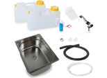 EAN: 4260306555659 - Produktname: Camping Wohnmobil Miniküche Bausatz Miniküche Set 325 x 265 x 100 mm Kabellos - BatteriebetriebBeschreibung: Kompletter Bausatz für eine Miniküche im Wohnwagen, Camper Van, T4 T5 T6, Vito etc. Batteriebetrieb. Du baust gerade deinen Bus zum Camper um? Brauchst du an deinem Markstand fließendes Wasser? Dann bist du bei uns genau richtig. Wir haben das passende Set für dich. Die Verkabelung bekommst du bei uns schon vormontiert, das erleichtert dir die Montage. Du hast hier alles was du benötigst um fließendes Wasser zu bekommen.Lieferumfang / Paketinhalt:2 Stück Weithals Raumsparkanister 12 Liter für Frischwasser und Brauchwasser Maße: 425 x 260 x 125 mm1 Stück Deckel mit Loch für den Abwasserschlauch1 Stück Deckel Schraubverschluss1 Stück Waschbecken aus Edelstahl Maße: 325 x 265 x 100 mm1 Stück Automatikwasserhahn1 Stück Ablauf 90 gewinkelt mit 19 mm Schlauchanschluss1 Stück Stopfen für den Ablauf, oberhalb in Edelstahl1 Stück 12V Tauchpumpe 10 L/min 0,5 - 0,6 bar, 10 - 18 Watt, 1 Meter Kabel1 Stück Staubschutzkappe mit Ring, integr. an der Pumpe1 Stück 12V Batteriebox + 2 Stück 6V Blockbatterie, zum kabellosen Betrieb1 Meter Frischwasserschlauch1 Meter Abwasserschlauch2 Stück Spezial Schlauchklemmen für Frischwasserschlauch1 Stück Spezial Metallschelle für Abwasserschlauch1 Stück Elektroplan - bei kaufland.de - aus Yadore Produktdaten ![]() kaufland.d e Miniküche Campingküche Küchenblock London Bausatz Batterie Spüle 325x265x100mm