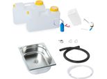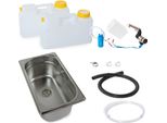 EAN: 4260306553525 - Produktname: Camping Wohnmobil Miniküche Bausatz Miniküche Set 325 x 265 x 100 mm Kabellos - BatteriebetriebBeschreibung: Kompletter Bausatz für eine Miniküche im Wohnwagen, Camper Van, T4 T5 T6, Vito etc. Batteriebetrieb. Du baust gerade deinen Bus zum Camper um? Brauchst du an deinem Markstand fließendes Wasser? Dann bist du bei uns genau richtig. Wir haben das passende Set für dich. Die Verkabelung bekommst du bei uns schon vormontiert, das erleichtert dir die Montage. Du hast hier alles was du benötigst um fließendes Wasser zu bekommen.Lieferumfang / Paketinhalt:2 Stück Weithals Raumsparkanister 12 Liter für Frischwasser und Brauchwasser Maße: 425 x 260 x 125 mm1 Stück Deckel mit Loch für den Abwasserschlauch1 Stück Deckel Schraubverschluss1 Stück Waschbecken aus Edelstahl Maße: 325 x 265 x 100 mm1 Stück Automatikwasserhahn1 Stück Ablauf 90 gewinkelt mit 19 mm Schlauchanschluss1 Stück Stopfen für den Ablauf, oberhalb in Edelstahl1 Stück 12V Tauchpumpe 10 L/min 0,5 - 0,6 bar, 10 - 18 Watt, 1 Meter Kabel1 Stück Staubschutzkappe mit Ring, integr. an der Pumpe1 Stück 12V Batteriebox + 2 Stück 6V Blockbatterie, zum kabellosen Betrieb1 Meter Frischwasserschlauch1 Meter Abwasserschlauch2 Stück Spezial Schlauchklemmen für Frischwasserschlauch1 Stück Spezial Metallschelle für Abwasserschlauch1 Stück Elektroplan - bei kaufland.de - aus Yadore Produktdaten ![]() ![]() Wasseranlage Imbisswagen Verkaufsanhänger Campingküche 12V Bausatz Spüle 325x265x150 mm Integrierten Wasserhahn Barwig Chrom Wasserkanister 19 Liter Weithalskanister Comet Bulliküche (ad-ideen)