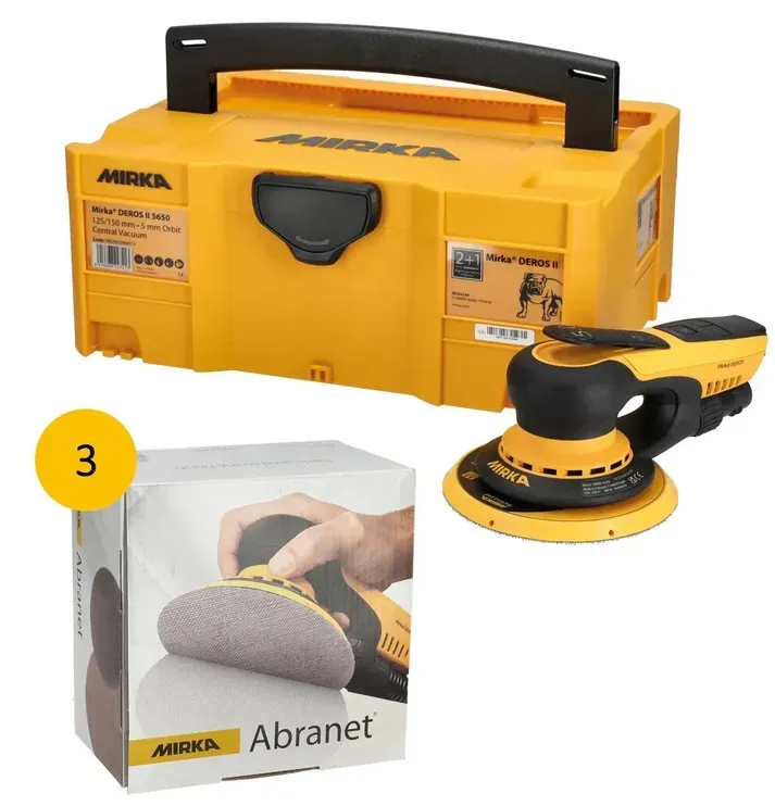 Zustand: Neu - 1,62 € / Stück - Schleifscheiben - MIRKA Mirka - 5423283599 - EAN: 6416868975956 - Lieferumfang: Mirka Abranet Schleifscheiben 125 mm, Mix-Pack 5 von jeder Körnung 80, 120, 180, 240, 320, 400, 600 / 35 Stück pro Packung. Für passende Exzenter-Schleifmaschinen, Schleifklötze und Handschliff geeignet Anwendungsgebiete: Abranet eignet sich zum Schleifen von Holz, Spachtel, Lack, Kunststoff und Metall Gesundes & Staubfreies Schleifen wie ein Profi: Das Abranet Schleifnetz verfügt über viele kleine Löcher. Es ermöglicht beim Schleifen mit Absaugung ein nahezu staubfreies Schleifen. Dadurch wird das Einatmen der gesundheitsgefährdenden Stäube verhindert. Hohe Qualität & lange Haltbarkeit: Da der Schleifstaub optimal abgesaugt wird, verhindert es das Verstopfen des Schleifmittels. Abranet sorgt für hohen Abtrag und überzeugt durch überdurchschnittliche Standzeit und Langlebigkeit Für Handschiff und alle 125 mm Exzenterschleifer geeignet: Das Abranet Schleifgitter mit Klett passt immer, unabhängig vom Lochmuster Ihres Schleifers. Ohne mühevolles Ausrichten der Scheibe auf den Schleifteller - bei Amazon.de Dieses Angebot kombiniert einen hochwertigen Exzenterschleifer mit einer Auswahl an Abranet Schleifscheiben, ideal für professionelle Anwender. ![]() ![]() Mirka DEROS II Deros II 125/150mm + Abranet inkl. 3 Pack Abranet 1x P100, 1x 120...