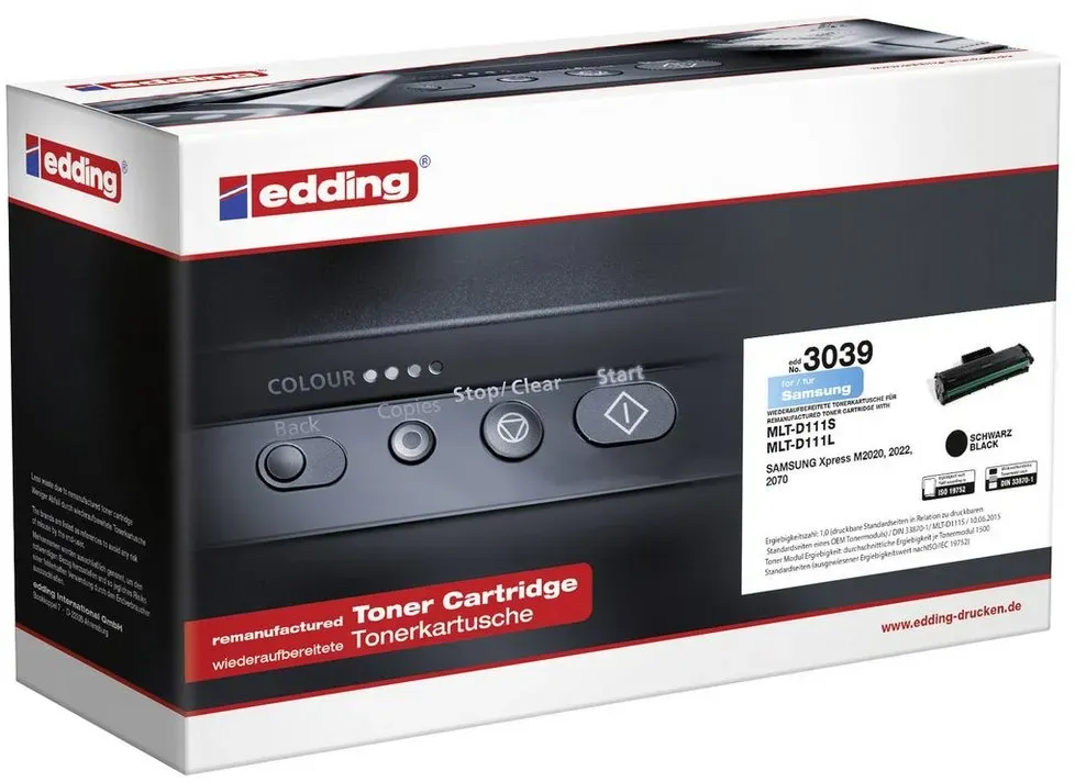Verfügbarkeit: lieferbar-in 2-3 Werktagen bei dir - Kategorie: Toner - edding - GTIN:4057305001191 - Warnhinweise , Die Angabe der Seitenreichweite (soweit angegeben) bezieht sich auf eine durchschnittliche Druckseite mit 5% Deckung im Entwurfsmodus., - 44,74 Euro bei OTTO - gefunden von billiger.de Dieser Original HP Toner ist eine zuverlässige Wahl für Nutzer, die Wert auf Markenqualität legen. ![]() ![]() Original HP SU810A / MLT-D111S Toner Schwarz