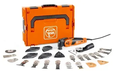 25 Händlerangebote bei billiger.de - Kategorie: Multifunktionswerkzeuge - Fein - MultiTool für schnellsten Arbeitsfortschritt bei Ausbau und Renovierung mit 60 Zubehören - zum Sägen in Holz, Metall, Kunststoffe, zum Austrennen von Fliesen, Schneiden von Silikonfugen und Teppichen, Entfernen von Klebstoffresten und Abtragen von Fliesenkleber. Anti-Vibrationssystem: Dauerhaft sicheres und angenehmes Arbeiten durch geringste Vibrationen und hervorragende Geräuschdämpfung. Starlock Plus Werkzeugaufnahme: Mehr Arbeitsfortschritt und höhere Prezision. QuickIN: Werkzeugwechsel in unter 3 Sekunden durch patentiertes werkzeugloses Fein Schnellspannsystem. Dank StarlockMax Werkzeugaufnahme haben Sie Zugriff auf rund 180 Fein Zubehöre der Leistungsklassen Starlock, StarlockPlus und StarlockMax. 450 W Fein Hochleistungsmotor: Dauer- und überlastsicherer Hochleistungsmotor mit hohem Kupferanteil für höchste Schnittgeschwindigkeit und schnellsten Arbeitsfortschritt. Tachogenerator: Konstante Drehzahlen auch unter Last und stufenlose elektronische Drehzahlregelung. Metall-Getriebe: Hohe Belastungsfähigkeit und maximale Lebensdauer, da alle Getriebeteile aus Metall gefertigt sind. Mechanische Schnittstelle: Für stationären Betrieb in der Tisch- oder Bohrständerhalterung oder zu Befestigung des Tiefenanschlags. Industriekabel: Grosser Aktionsradius dank 5 Meter langem feindrahtigen Gummikabel in Industriequalität. - GTIN:4014586893396 ![]() ![]() Fein Multimaster MM 700 Max Top 10000-19500min-1 StarlockMax 450 W