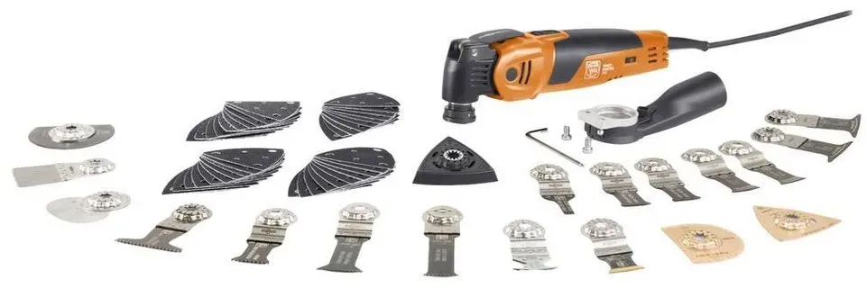 25 Händlerangebote bei billiger.de - Kategorie: Multifunktionswerkzeuge - Fein - MultiTool für schnellsten Arbeitsfortschritt bei Ausbau und Renovierung mit 60 Zubehören - zum Sägen in Holz, Metall, Kunststoffe, zum Austrennen von Fliesen, Schneiden von Silikonfugen und Teppichen, Entfernen von Klebstoffresten und Abtragen von Fliesenkleber. Anti-Vibrationssystem: Dauerhaft sicheres und angenehmes Arbeiten durch geringste Vibrationen und hervorragende Geräuschdämpfung. Starlock Plus Werkzeugaufnahme: Mehr Arbeitsfortschritt und höhere Prezision. QuickIN: Werkzeugwechsel in unter 3 Sekunden durch patentiertes werkzeugloses Fein Schnellspannsystem. Dank StarlockMax Werkzeugaufnahme haben Sie Zugriff auf rund 180 Fein Zubehöre der Leistungsklassen Starlock, StarlockPlus und StarlockMax. 450 W Fein Hochleistungsmotor: Dauer- und überlastsicherer Hochleistungsmotor mit hohem Kupferanteil für höchste Schnittgeschwindigkeit und schnellsten Arbeitsfortschritt. Tachogenerator: Konstante Drehzahlen auch unter Last und stufenlose elektronische Drehzahlregelung. Metall-Getriebe: Hohe Belastungsfähigkeit und maximale Lebensdauer, da alle Getriebeteile aus Metall gefertigt sind. Mechanische Schnittstelle: Für stationären Betrieb in der Tisch- oder Bohrständerhalterung oder zu Befestigung des Tiefenanschlags. Industriekabel: Grosser Aktionsradius dank 5 Meter langem feindrahtigen Gummikabel in Industriequalität. - GTIN:4014586893396 Dieses Top-Modell kommt mit 60 Zubehören und Anti-Vibrationssystem, was es zu einer umfassenden Lösung für anspruchsvolle Aufgaben macht. ![]() ![]() FEIN Multimaster MM 700 Max Top, Unser bestes MultiTool mit 60 Zubehören zum Sägen, Schleifen, Schneiden , 450 W, Anti-Vibrationssystem, Aufnahme StarlockMax, QuickIN Werkzeugwechsel