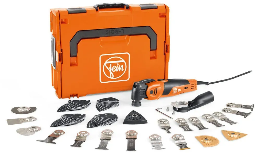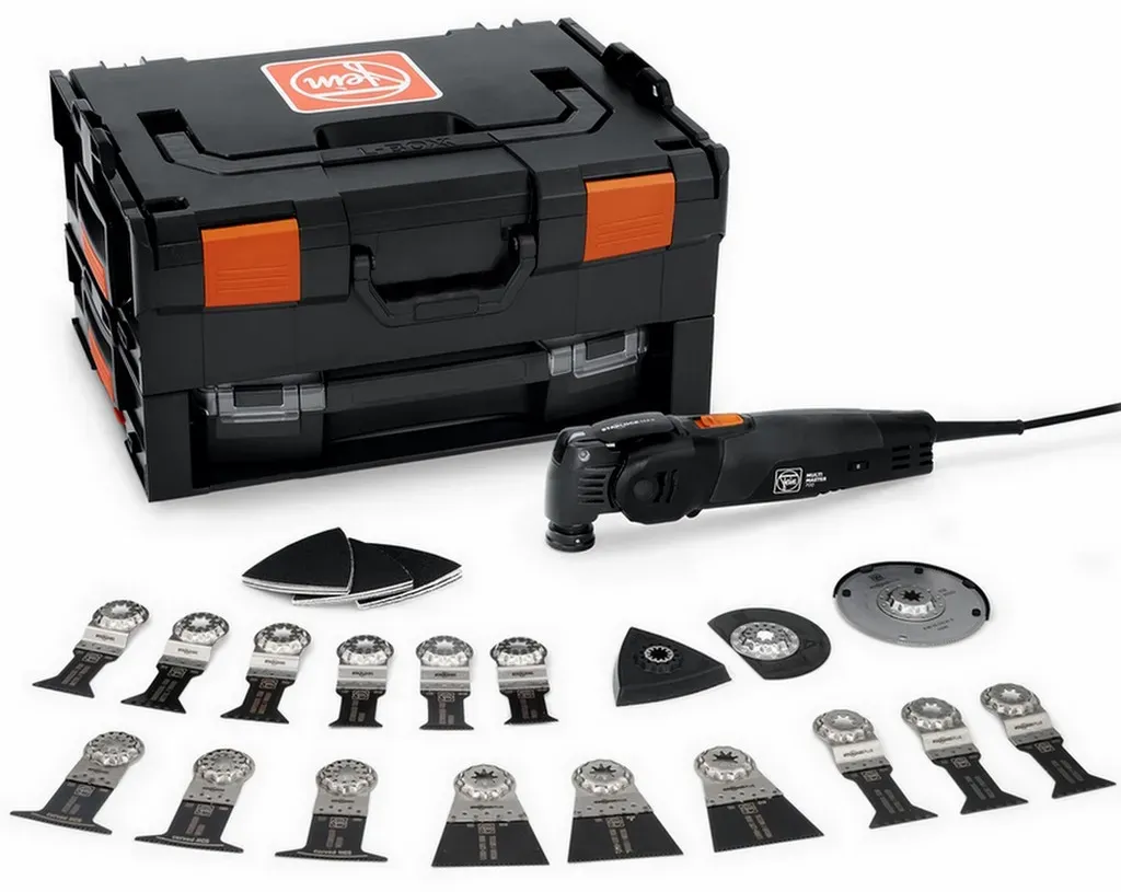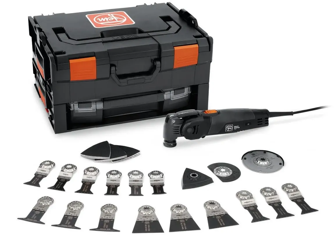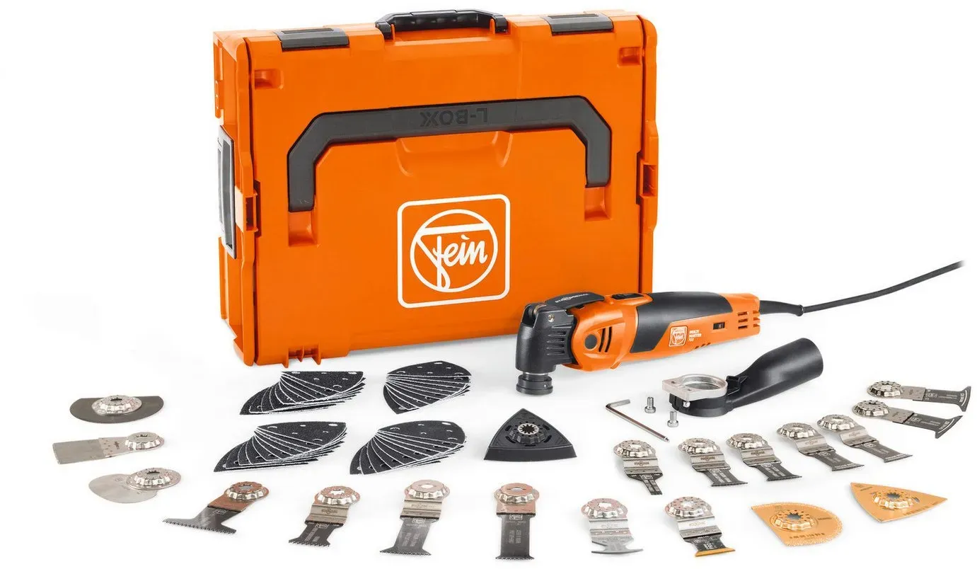 Kategorie: Multifunktionswerkzeuge - Fein - GTIN:4014586897912 - OSZILLIERER: MM 700: Unser bestes MultiTool für schnellsten Arbeitsfortschritt bei Ausbau und Renovierung mit Bi-Metall-Sägeblatt für Holz, Metall und Kunststoffe. STARLOCK MAX AUFNAHME: Mehr Arbeitsfortschritt und höhere Präzision dank 100 % verlustfreier Kraftübertragung. Dank StarlockMax Werkzeugaufnahme haben Sie Zugriff auf rund 180 FEIN Zubehöre der Leistungsklassen Starlock, StarlockPlus und StarlockMax QUICK-IN Werkzeugwechsel in unter 3 Sekunden durch patentiertes werkzeugloses FEIN Schnellspannsystem. ANTI-VIBRATIONSSYSTEM: Dauerhaft sicheres und angenehmes Arbeiten durch geringste Vibrationen und hervorragende Geräuschdämpfung. TECHNISCHEN DATEN: Nennaufnahme 450 W, Werkzeugaufnahme StarlockMax, Werkzeugwechsel QuickIN, Amplitude 2x2,0 Schwingungen 10000-19500 min-1.Im Lieferumfang: 60 Zubehören, 1 Kunststoff-Werkzeugkoffer (L-BOXX 136) - 379,90 Euro bei Amazon Marketplace Home Improvement - gefunden von billiger.de Dieses Angebot beinhaltet das Multitool in einer L-Boxx, was für eine sichere Aufbewahrung und einfachen Transport sorgt. ![]() ![]() Fein Multimaster 700 Max Top Multitool 450 Watt in l-boxx