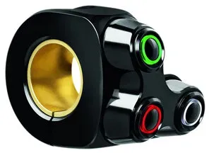 Kategorie: Sonstige Elektroinstallationsartikel - motogadget - GTIN:4255676302521 - mo.switch basic LED, 2 Taster, schwarz - Motogadget bringt mit dem *mo.switch basic LED* 2 Taster mehr Gestaltungsspielraum beim Customizing deines Motorrads an den Lenker. Ob Zusatzscheinwerfer, Hupe, Blinker - alles lässt sich mit dem Motogadget *mo.switch basic LED* 2-Taster schalten. Und dazu sieht der Taster absolut gut aus! Durch zwei Anschlüsse je Taster ist eine Ein-Draht- oder Zwei-Draht-Beschaltung ohne Schwierigkeiten möglich. Ein Anschluss für Masse ist intern schon für die Ein-Draht-Beschaltung vorgesehen. Eine Kabelführung im Lenker ist somit einfach durchzuführen. Material: Aluminium, CNC-gefräst, eloxiert spritzwassergeschützt (IP65) Innendurchmesser: 22 mm und 1 Zoll Außendurchmesser Gehäuse: ca. 45 mm Breite: 2 Taster 22 mm Taster komplett verkabelt hochwertiges Anschlusskabel mit 1,8 m Länge LED beleuchtete Taster Taster: Schwarz Taster LED Farbe: Weiß maximaler Taster Schaltstrom: 1A, alle Taster schalten auf Masse Lieferumfang: 1 x Motogadget *mo.switch basic* Aluminium-Gehäuse 2 x hochwertige Taster QR Code für Anbau- und Bedienungsanleitung - 129,00 Euro bei Louis - gefunden von billiger.de ![]() ![]() motogadget mo.switch basic LED Tasterarmatur, 2 Taster