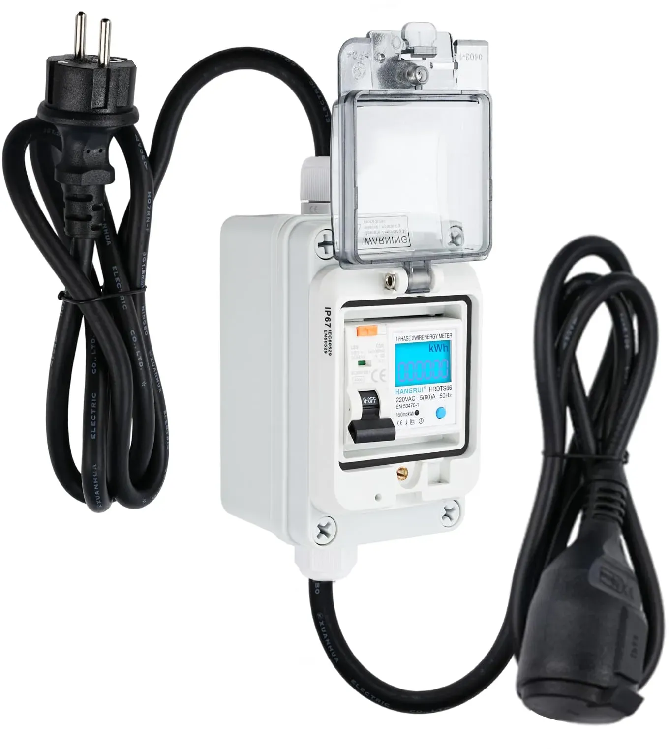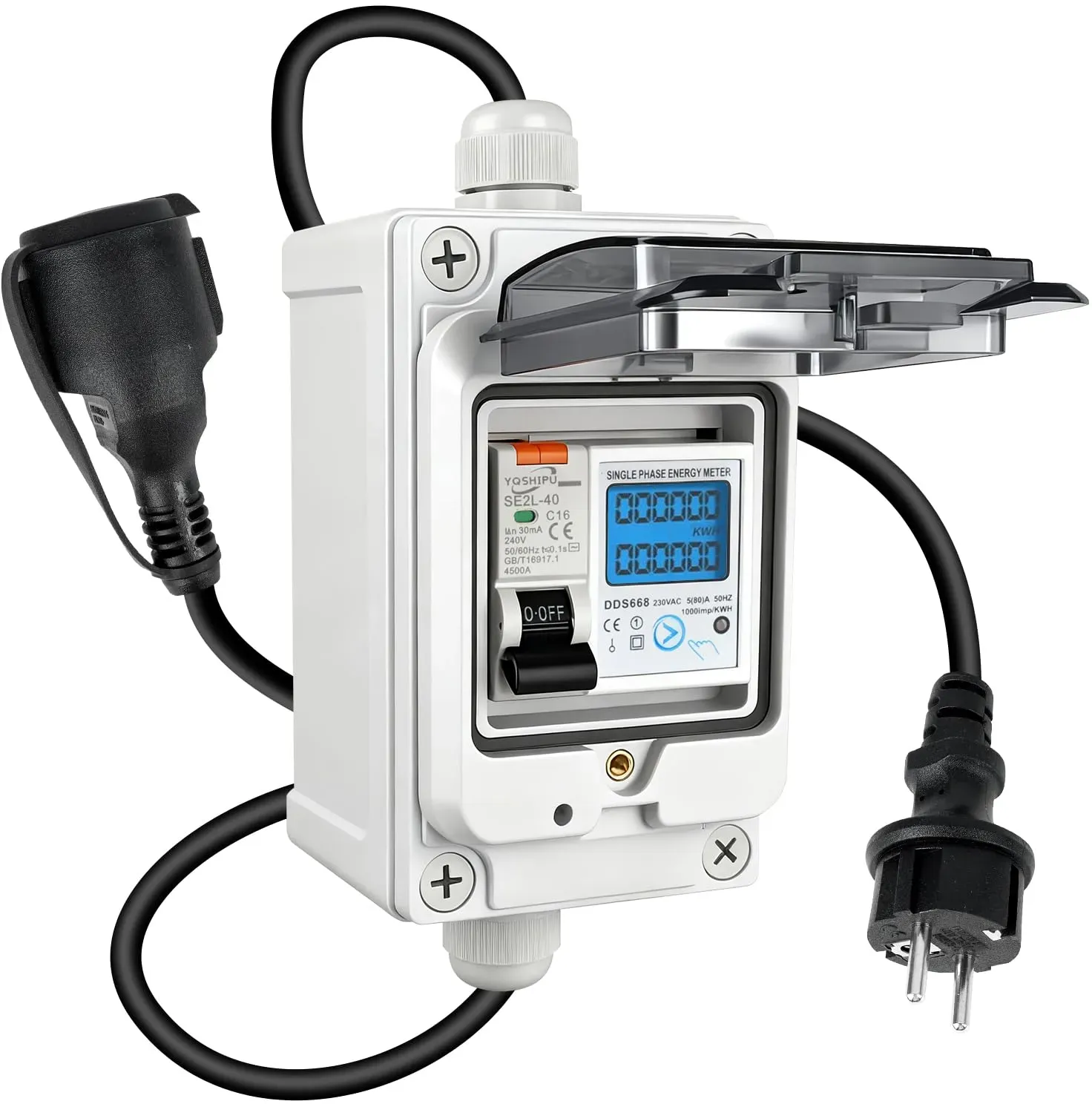 Auf Lager Versand durch AmazonWDKXCN Mobiler Digitaler Stromzähler, 230V 16A Stromzähler für Steckdose Outdoor, IP67 Wasserdicht Zwischenzähler Strom Outdoor mit Gummischlauchkabel Tragbar, für Wohnmobile Elektrofahrzeuge