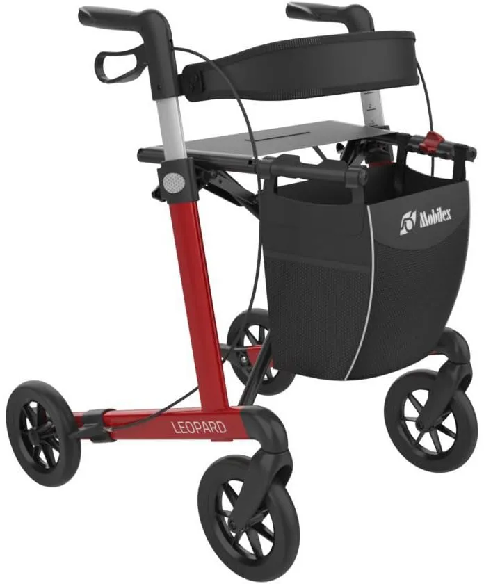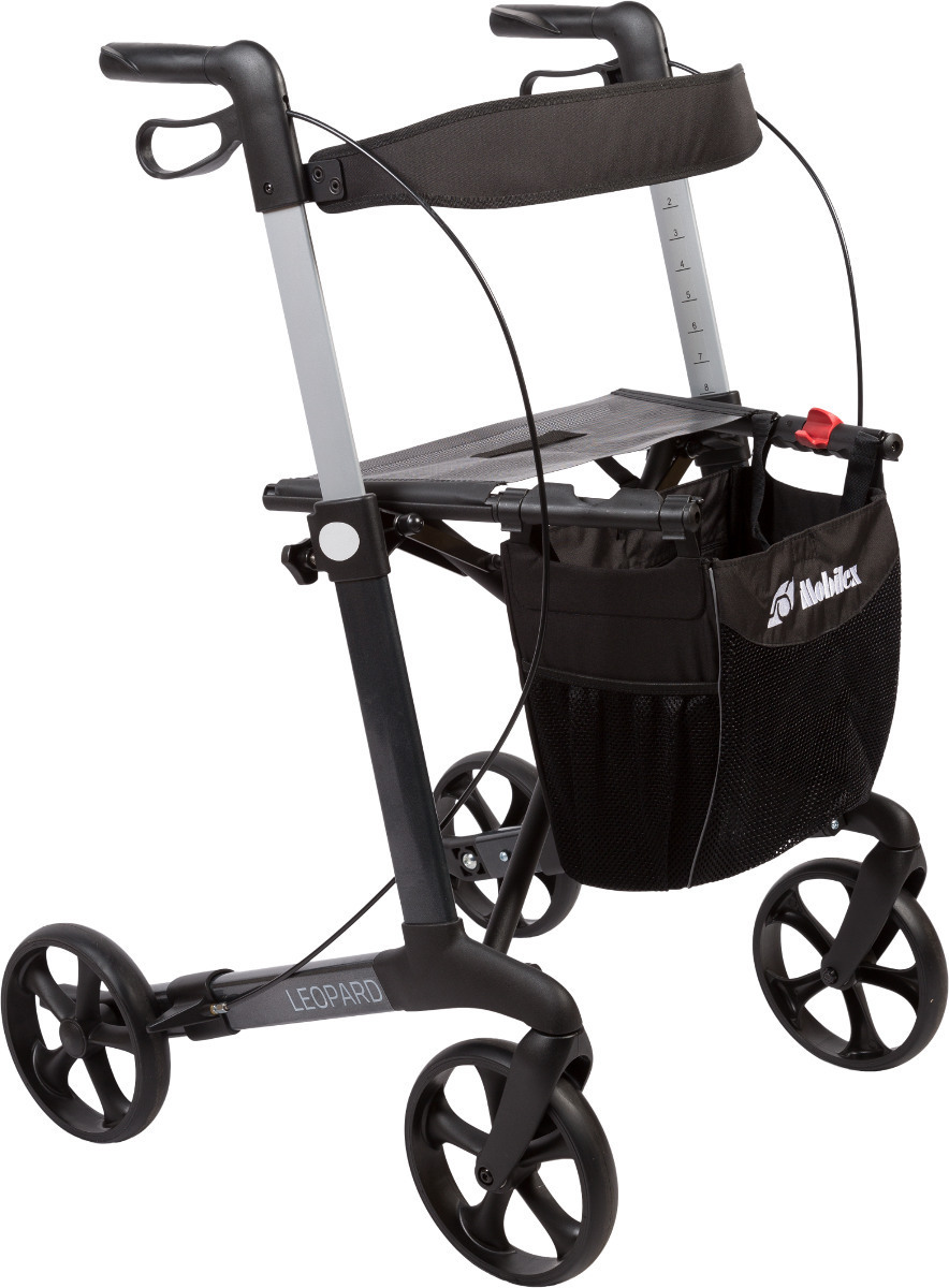 EAN: 4260487551204 - Leichtgewichtrollator Leopard von MobilexDie ideale Gehhilfe für den Innen- und Außenbereich Der faltbare Leichtgewichtrollator Leopard von Mobilex ist die optimale Gehhilfe für den Einsatz sowohl im Innen- als auch im Außenbereich. Dank seiner robusten Konstruktion und der hochwertigen Materialien ist er besonders langlebig und zuverlässig. Höhenverstellbare Schiebegriffe für individuellen Komfort Die Schiebegriffe des Rollators lassen sich leicht in der Höhe verstellen, um sie an die individuellen Bedürfnisse des Nutzers anzupassen. Dadurch wird ein angenehmes und sicheres Greifen ermöglicht, was den Gehkomfort deutlich verbessert. Bequeme Pause und Einkaufsmöglichkeit mit Sitz und geräumiger Tasche Der Leichtgewichtrollator Leopard verfügt über einen stabilen Sitz, auf dem man bequem eine Pause einlegen kann. Zusätzlich ist er mit einer geräumigen abnehmbaren Tasche ausgestattet, in der Einkäufe oder persönliche Gegenstände sicher verstaut werden können. Praktischer Gehstockhalter für mehr Mobilität Ein integrierter Gehstockhalter ermöglicht es dem Benutzer, seinen Gehstock jederzeit griffbereit zu haben. Dies sorgt für zusätzliche Sicherheit und Mobilität und ermöglicht es Ihnen, sich auf Ihre Gehhilfe zu verlassen. Einfach zusammenklappbar für platzsparenden Transport Der Leichtgewichtrollator Leopard lässt sich problemlos und schnell zusammenklappen und dadurch auf eine geringe Größe reduzieren. Das erleichtert den Transport und ermöglicht es ... Die Small-Version in Rot ist besonders für Personen geeignet, die einen kompakteren Rollator bevorzugen. ![]() ![]() MOBILEX Rollator Leopard Small rot