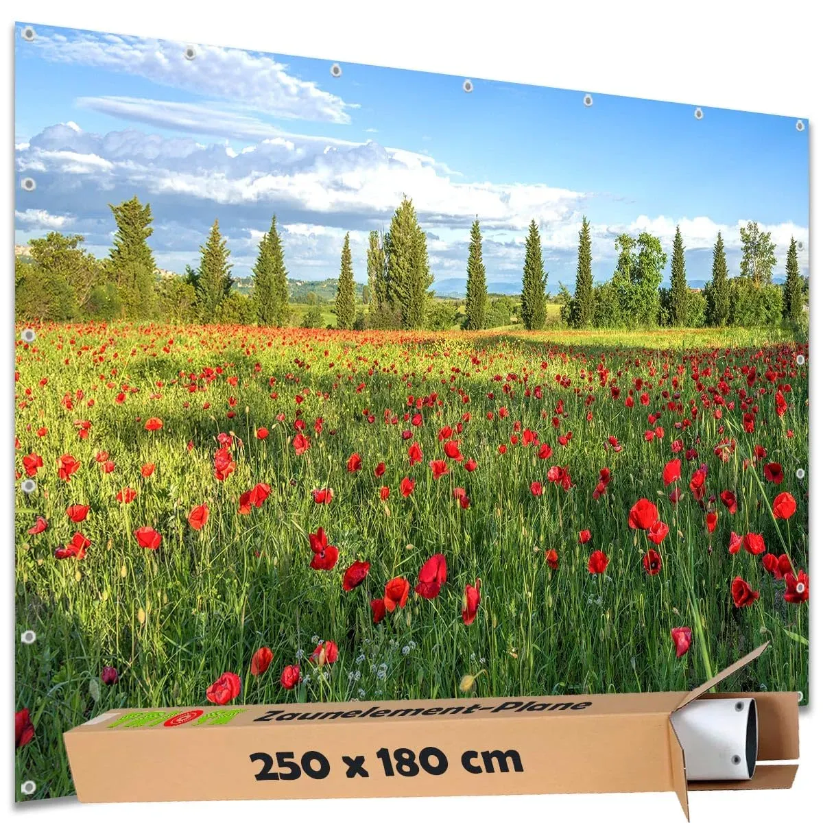 Verfügbarkeit: Auf Lager - Kategorie: Sichtschutz - TRIOSK - 🌷 GENIALE GARTENDEKO €“ Vergrößere optisch deine Fläche und schaffe dir einen fantastischen Raum im Outdoor Bereich. Die blickdichte Gartenzaunplane bietet dabei großartigen Sichtschutz. Sie eignet sich für den Außen- und Innenbereich und schützt, dank ihrer Größe von 2,50 x 1,80 m und ihrer kräftigen Qualität mit 510 g pro m2, ideal vor Wind und neugierigen Blicken. 💎 BRILLANTER BLICKFANG €“ Verschönere deinen Hof, Garten oder die Terrasse. Versetze dich mit dem Gartenzaunbanner in ein blühendes Mohnblumenfeld im Sommer und genieße den herrlichen Blick über das atemberaubende weite Blütenmeer. Leuchtend rote Pflanzen laden dich zum Entspannen ein. Durch seine Größe kannst du das schöne Blumenmotiv auch von weitem bewundern. 💪 SUPER GARTENSICHTSCHUTZ €“ Durch die engmaschige Webstruktur ist die Sichtschutzplane stabil und flexibel einsetzbar. Sie ist blickdicht, wetterfest und leicht zu reinigen. Einfach mit Wasser, Schwamm oder Tuch abwischen. Du kannst das Dekobanner mit dem Naturmotiv für viele Gelegenheiten nutzen. Idealer Zaunsichtschutz für Stabmattenzaun, Gartenzaun oder Terrassenzaun.  HOHE QUALITäT €“ Die hochwertige Zaunelementplane ist aus dichtem PVC, einseitig bedruckt mit weißer Rückseite, beschichtet, UV-beständig und rundum mit Metallösen versehen. Dank der ösen lässt sich die Motivplane einfach und schnell mit Kabelbinder am Zaunelement ... Dieses große Wandbild ist ideal, um einen beeindruckenden Blickfang mit Mohnblumen in leuchtendem Orange zu schaffen. ![]() Wandbild ARTLAND 'Mohnblumen I', orange (farbe bild(er): orange), B:120cm H:90cm, Bilder, als Leinwandbild, Poster, Wandaufkleber in verschied. Größen