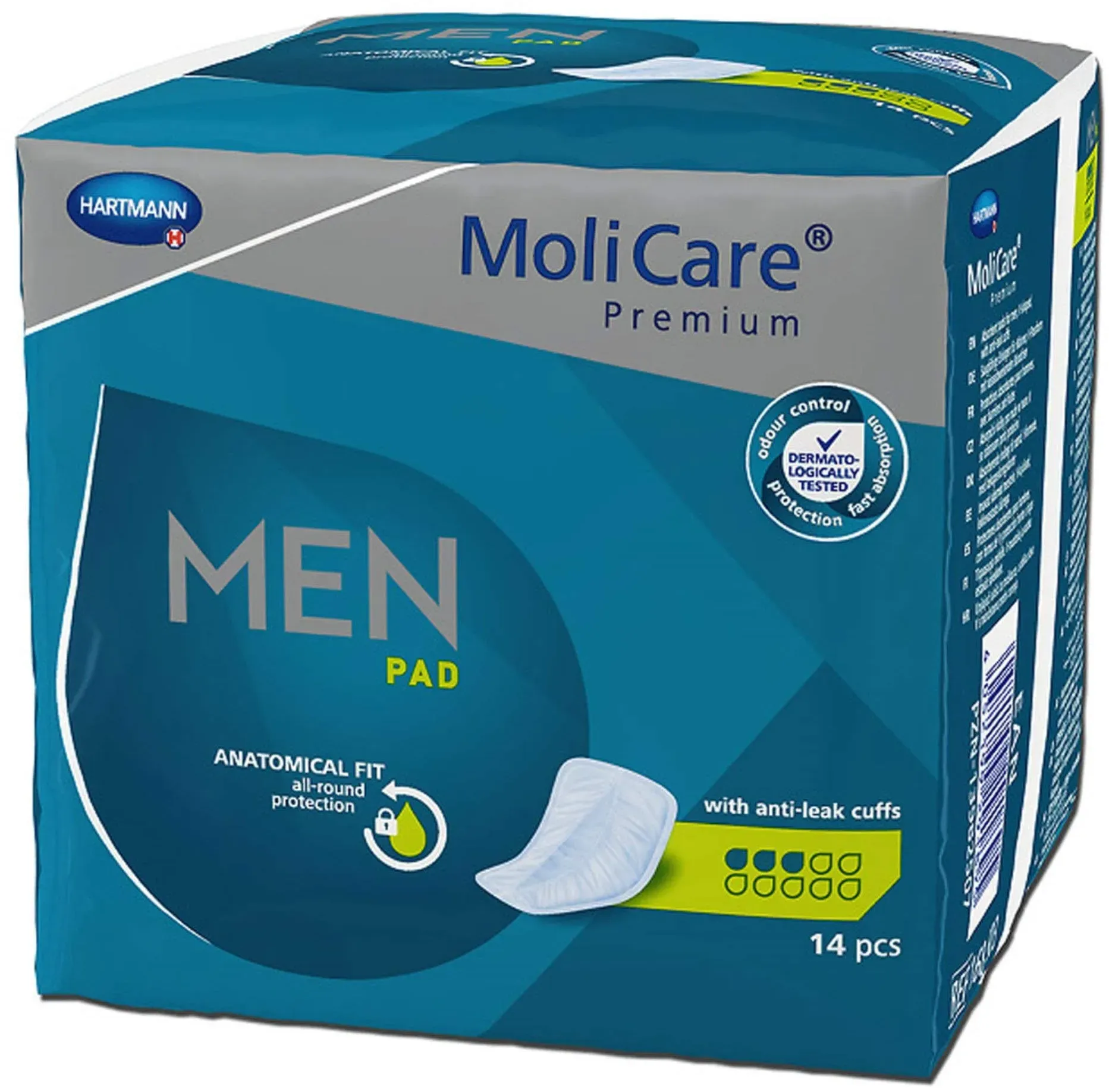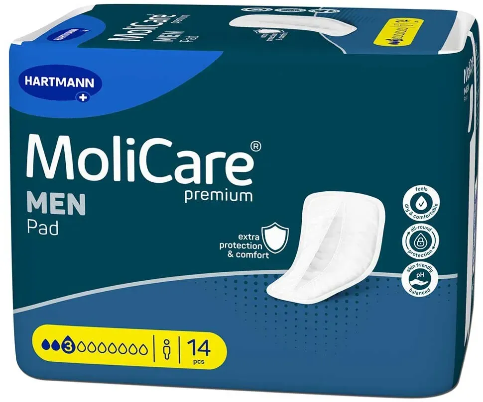 Kategorie: Inkontinenz - Hartmann - GTIN:4052199290874 - Diskreter und sicherer Sitz durch breite Klebestreifen zur Fixierung in der Unterwäsche Körpergerechte Passform Geruchsneutral Geeignet für Personen mit leichter bis mittlerer Blasenschwäche - 9,91 Euro bei Amazon Marketplace Health & Personal Care - gefunden von billiger.de Für 10,51 Euro erhalten Sie 14 Stück der MoliCare Premium MEN Pad 3 Tropfen, ein faires Angebot für die spezielle Herrenvariante. Medikament e- per- klick.de MOLICARE Premium MEN Pad 3 Tropfen 14 St