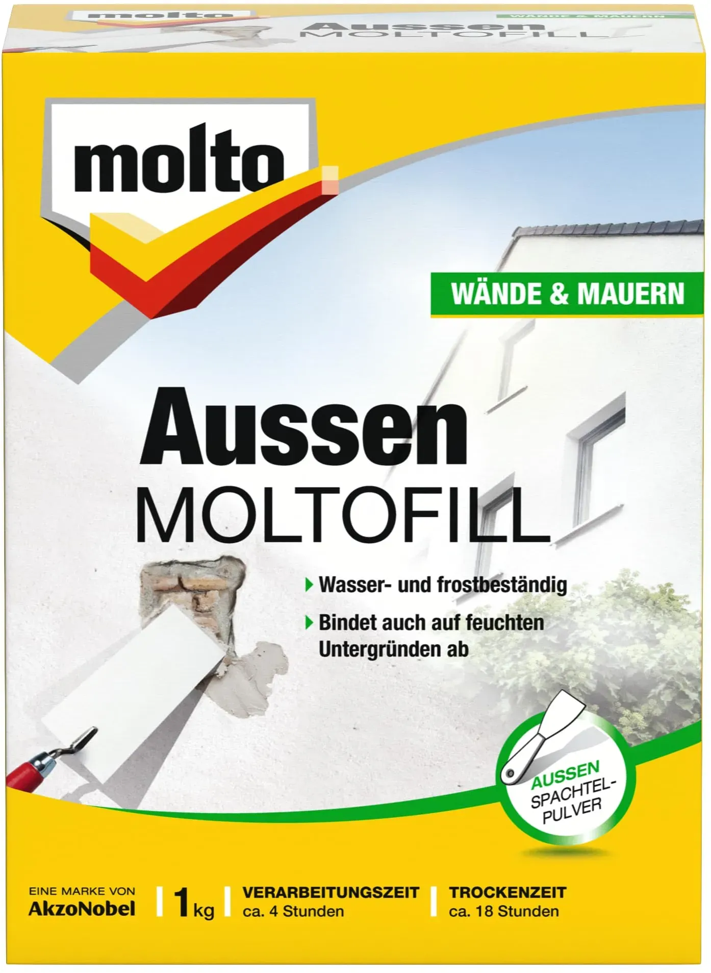 Molto außen META PreisvergleichMit dem Meta-Preisvergleich suchen Sie gleichzeitig bei den großen Preisvergleich Portalen!Jetzt live Suche nach molto außen starten! Molto außen KaufberatungBei der Suche nach 'Molto Außen' handelt es sich hauptsächlich um Produkte der Marke Molto, die Spachtelpulver und Reparaturspachtel für den Außenbereich anbieten. Diese Produkte sind speziell für Ausbesserungen, Füllen und Glätten von Rissen, Löchern und beschädigten Stellen an Putz, Beton, Zement, Mauerwerk, Styropor und Hartschaum im Außenbereich konzipiert. Sie sind wetter-, wasser- und unterwasserbeständig, schleifbar und überstreichbar[1][3][5][9]. Wichtige Produktmerkmale bei Molto Außen Spachtel: