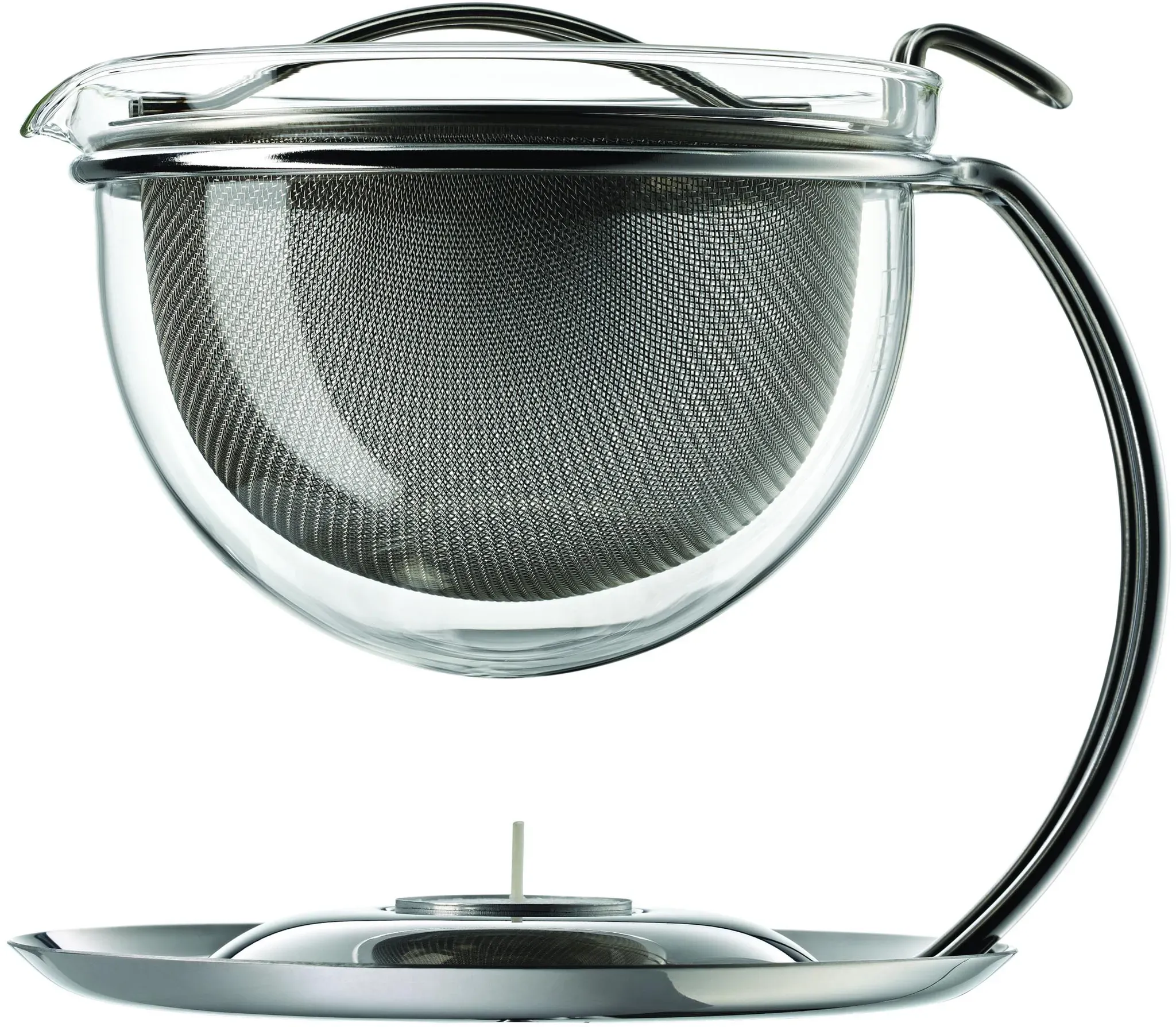 1 Händlerangebote bei billiger.de - Kategorie: Stövchen - Mono - Die schönere Teekanne ist auch die bessere. Mit extragroßem Siebeinsatz für maximale Aroma-Entfaltung und Stövchen. Von mono. Made in Germany. Kein Vergleich zu herkömmlichen Teekannen. Durch das geräumige Rund der Glasschale mit dem beinahe gleichgroßen Siebeinsatz bietet die Kanne dem Tee größtmöglichen Raum zur Aroma-Entfaltung. Frei im Teewasser schwebend, saugen sich die Blättchen besser voll und können ungehindert ihre feinen Geschmacks- und Aromastoffe abgeben. Nach gewünschter Ziehzeit heben Sie das Sieb mit einem Griff aus der Kanne. Ein fest schließender Edelstahl-Deckel und das Stövchen halten Ihren Tee heiß. Seit nahezu 3 n der Klassiker moderner, stilvoller Teezubereitung. 1989 kam Tassilo von Grolmans Filio -Kanne erstmalig auf den Markt und wurde sogleich ein Riesenerfolg. Der namhafte Formgeber verwirklichte damit aufs Schönste sein Credo: Design ist Kunst, die sich nützlich macht . Hochwertige, geschmacksneutrale Materialien. Die Schale (17 cm ) ist aus Borosilikatglas hitzebeständig, robust, spülmaschinenfest. Nachtropffester Ausgießer. Deckel, Halterung und Stövchen aus 18/10 Edelstahl: rostfrei, mit dauerhaftem Glanz. Die handlich gebogenen Doppelsteg-Griffe von Deckel und Freischwinger-Gestell bleiben stets kühl. Der extrem feinmaschige Edelstahl-Einsatz (16 cm ) lässt keine Rückstände im Teewasser. Misst 8,5 x 16 x 16 cm (H x B x T) Stövchen: 19,7 cm , mit Einbuchtung für ein Teelicht ... ![]() ![]() mono Siebablageschale groß FILIO für Teesiebeinsätze der mono Teekannen, Ø 14 cm, Edelstahl (H.Nr. 10275)