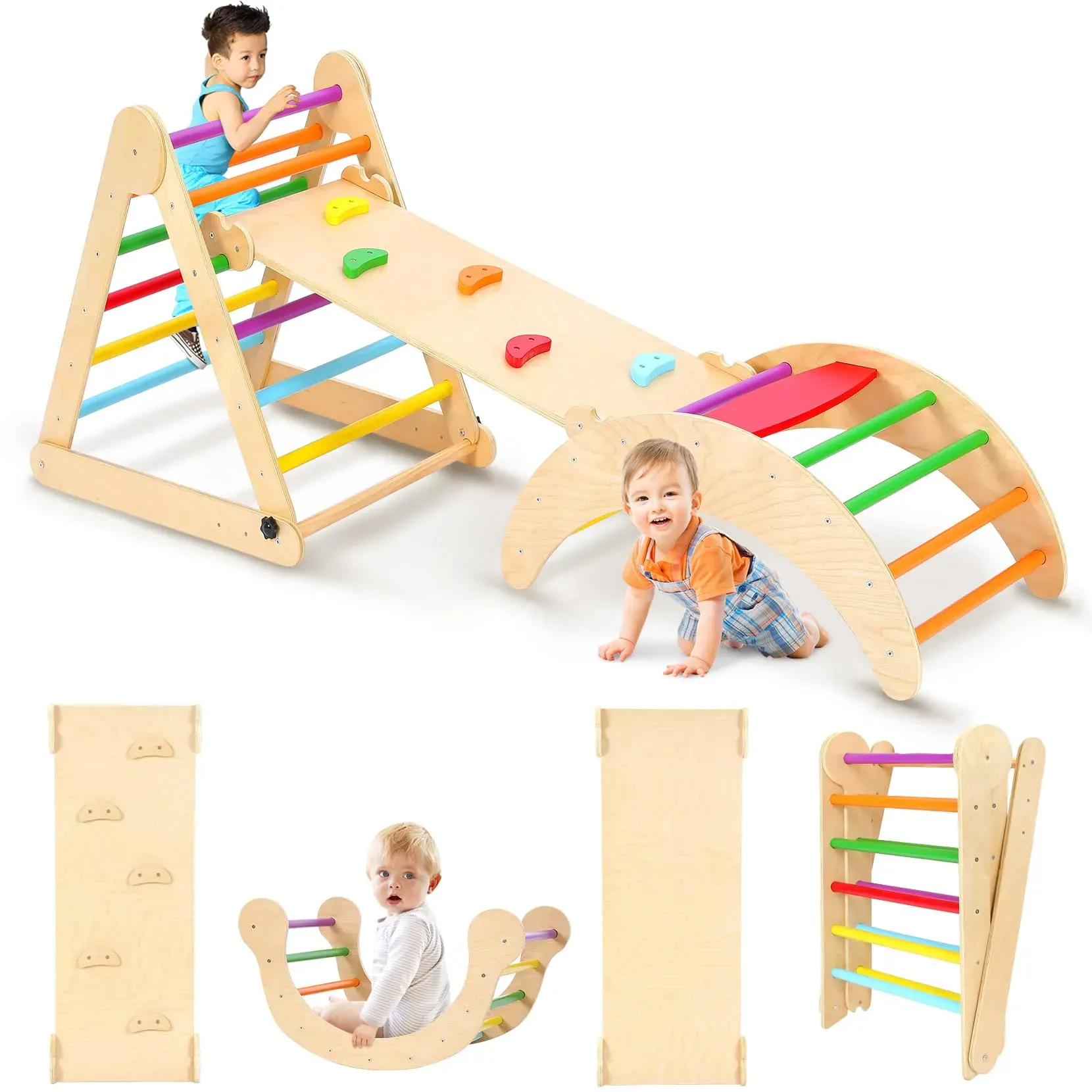 Auf Lager Versand durch AmazonKlettergerüst Indoor 7-in-1 Kletterdreieck mit Rutsche, Hölzernes Kletterdreieck Set für kletterbogen ab 1 Jahr, Montessori klettergerüst, Kletterturm, Kinder Indoor Spielplatz