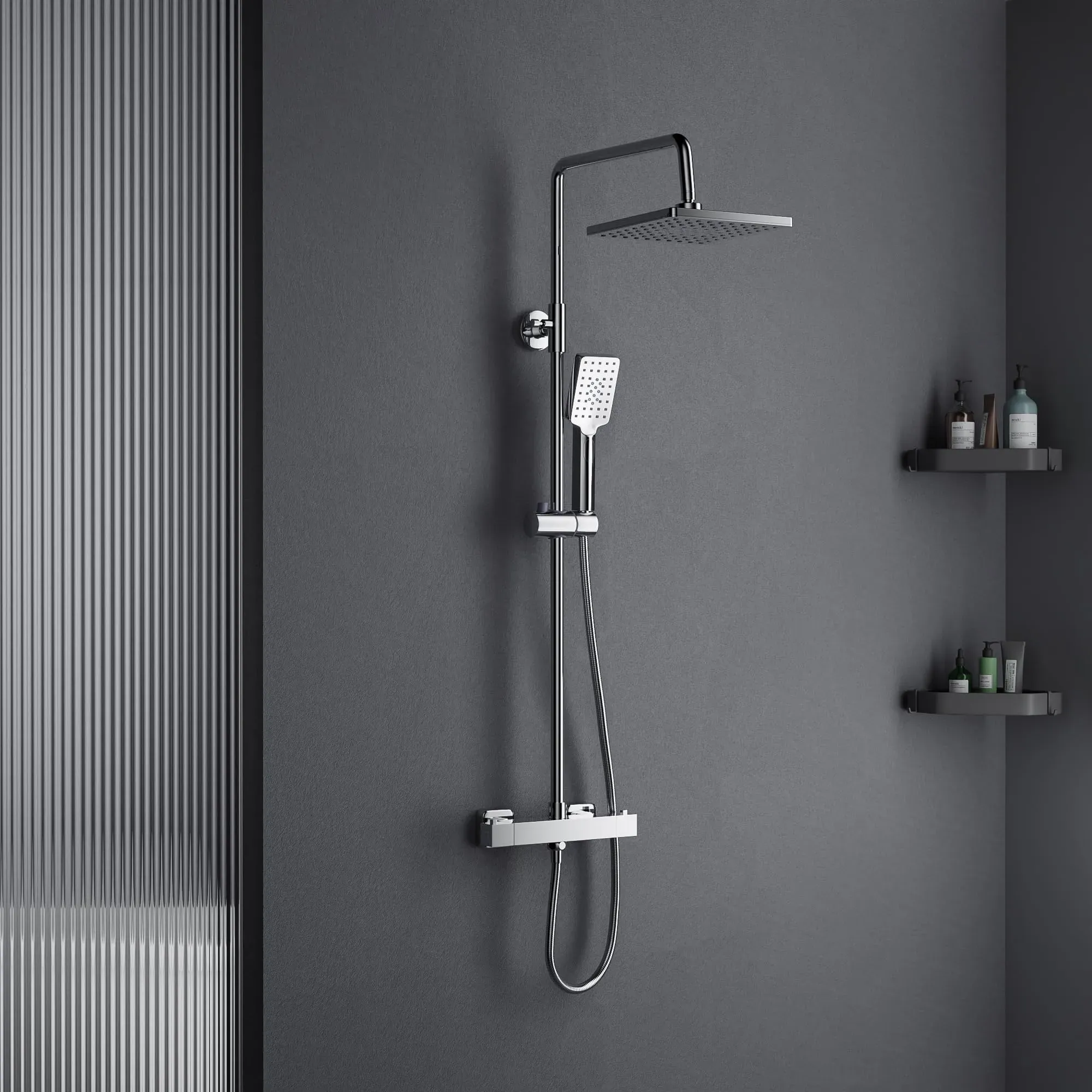 Kategorie: Duscharmaturen - MORADO - GTIN:0745431217961 - Stilvolles Erscheinungsbild Die neue quadratische Duscharmatur ist mit einer mehrschichtigen Chrombeschichtung versehen. Klassisch und großzügig, High-End-Mode, passend für verschiedene Badezimmerstile. Präzise Thermostatsteuerung Die Duschstange ist mit einem intelligenten Ventilkern ausgestattet, um die gewünschte Wassertemperatur in Sekundenschnelle einzustellen. Außerdem kann das intelligente Ventil die Wasserflussgeschwindigkeit intelligent zwischen Warmwasserzulauf und Kaltwasserzulauf ausgleichen, um den Wasserverbrauch um bis zu 40 Prozent zu senken. Ausgezeichnetes Material Der Duschmischhahn ist aus hochwertigem massivem Messing gefertigt, korrosionsbeständig und feuchtigkeitsbeständig, um Rost zu vermeiden. Einfache Installation Entworfen nach britischem Standard und mit der gleichen Größe G-1/2' für Einlass und Auslass, sodass es problemlos in Ihr bestehendes System eingebaut werden kann. Qualitätsservice Qualitätssicherung. Bei Problemen können Sie sich gerne an uns wenden. (Bitte beachten Sie, dass alle Produkte vor Verlassen des Werks getestet wurden. Wenn Sie das Produkt erhalten, ist es also normal, wenn noch etwas Wasser zurückbleibt.) - 57,89 Euro bei Amazon Marketplace Home Improvement - gefunden von billiger.de Für Liebhaber dunkler Designs ist diese schwarze Thermostat-Duscharmatur mit Verbrühschutz eine stilvolle Wahl. ![]() ![]() MORADO Thermostat Schwarz Duscharmatur mit Verbrühschutz bei 38 C,Duscharmatur mit Thermostat,Mischbatterie für Dusche,Brausethermostat für die Dusche, Schwarz Matt