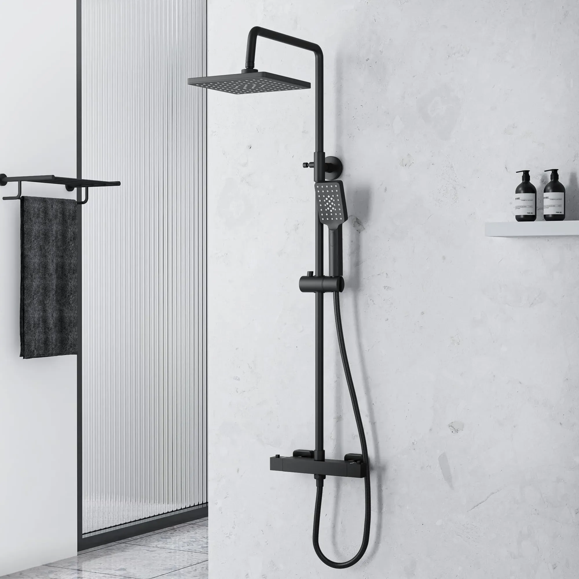 Kategorie: Brausegarnituren - MORADO - GTIN:0798842277642 - Präzise thermostatische Steuerung : Die thermostatische Duschmischstange von MORADO gleicht automatisch den Druck von heißem und kaltem Wasser in kurzer Zeit aus, um die Wassertemperatur für Ihren Komfort stabil zu halten. Mittlerweile sind unsere Thermostat-Duschstangen mit einer 38 C-Sicherheitssperre ausgestattet, um Ihnen Schutz zu bieten und eine komfortablere Dusche zu genießen. Multifunktionale Duschköpfe : Der Wassersprühmodus kann durch Drücken der Taste an der Handbrause geändert werden, wobei die Modi Puls, Sanft und Regendusche frei umschaltbar sind. Einfach verstellbar und drehbar : Die obere Brause und der Duschkopf können frei angehoben und abgesenkt werden, und die Höhe kann frei eingestellt werden, um den verschiedenen Bedürfnissen der Familienmitglieder gerecht zu werden. Der obere Brausewinkel kann eingestellt werden, Sie können die Dusche genießen, als ob Du warst im Regen. Einfache Installation : Ausgestattet mit Zubehör nach britischem Standard und detaillierter Installation. Einfach zu montieren und zu bedienen. Passend für jedes Badezimmer. Qualitätsservice : 1 Qualitätssicherung. Jedes Produkt wurde vor dem Verkauf streng geprüft. Wenn Sie Fragen zu den Produkten haben, können Sie sich gerne an uns wenden. Wir werden unser Bestes tun, um Ihnen ein angenehmes Erlebnis zu bieten. - 108,98 Euro bei Amazon Marketplace Home Improvement - gefunden von billiger.de Ein matt-schwarzes Duscharmatur-Komplettset mit Thermostat und Regendusche für ein besonders elegantes Badezimmerdesign. ![]() ![]() MORADO Schwarzes Dushcharmatur komplettset,duschset mit armatur,Duschsystem mit thermostat,Regendusche Duschsystem mit Duschkopf,Duscharmatur mit thermostat,matt schwarz