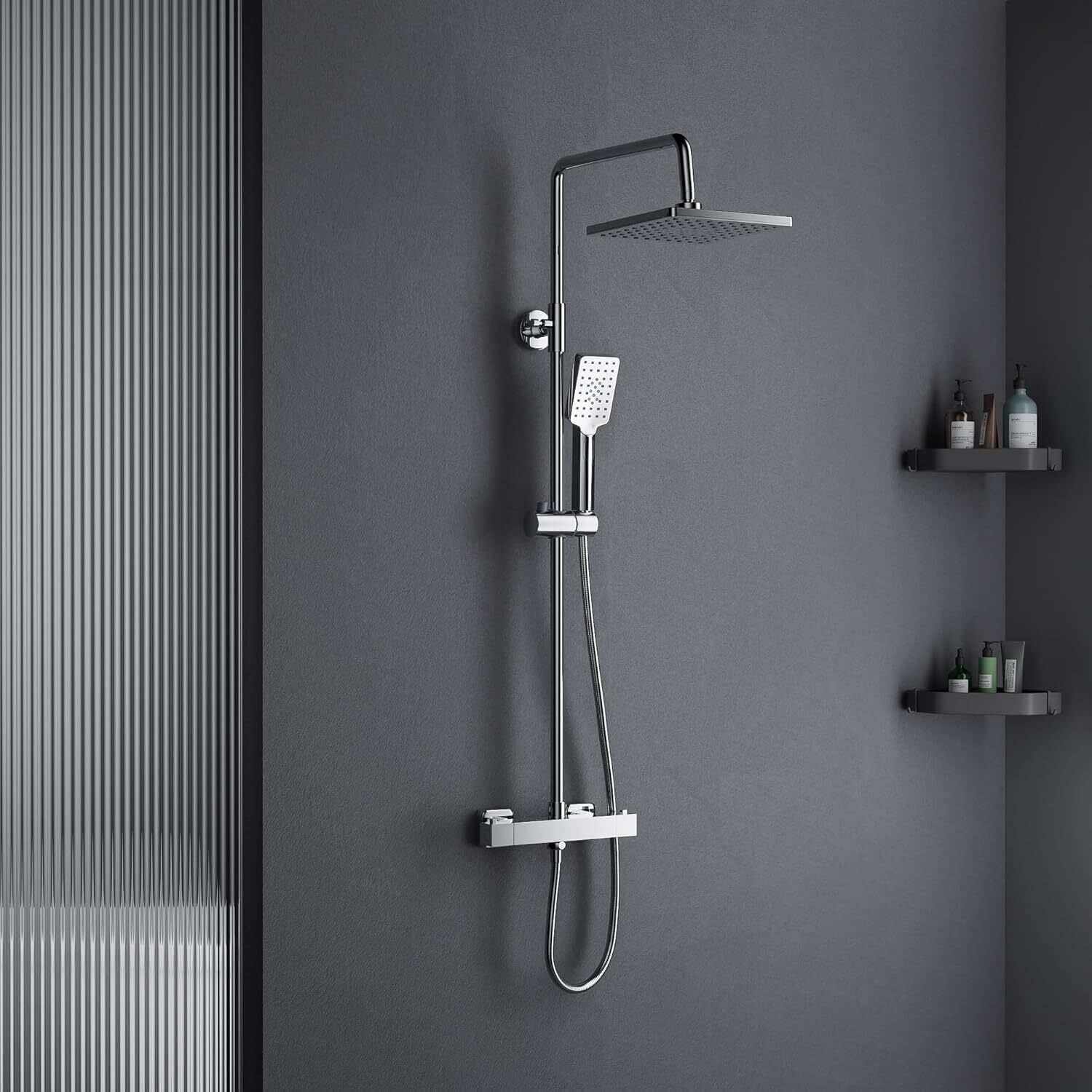 Kategorie: Brausegarnituren - MORADO - GTIN:0798842715632 - AUSGEZEICHNETES DESIGN Die Oberfläche des thermostatischen Duschsystems ist mit einer mattschwarzen Beschichtung versehen, die korrosionsbeständig ist, während die obere Regenbrause und die Handbrause dem menschlichen Körperdesign folgen und sowohl in der Höhe als auch im Winkel an die bequemste Position angepasst werden können, um ein besseres Duscherlebnis zu erzielen. DURABLE Der Körper des thermostatischen Duschsystems Säule und thermostatische Dusche Mixer Bar sind aus hochwertigem Messing, die Anti-Korrosions-und Anti-Rost-, auch Deisgned zu widerstehen hohen Temperaturen und Druck. Die Düse des Duschkopfes ist aus hochwertigem Silikon hergestellt, um Verstopfungen zu vermeiden und leicht zu reinigen. PRäZISE THERMOSTATISCHE STEUERUNG Die MORADO Thermostat-Brausebatterie kann den Druck von heißem und kaltem Wasser in kurzer Zeit automatisch ausgleichen, um die Wassertemperatur für Ihren Komfort stabil zu halten. Außerdem ist unsere Thermostat-Brausestange mit einer 38 C-Sicherheitssperre gegen Verbrühungen ausgestattet. EINFACHE INSTALLATION Wird mit britischem Standard-Armaturensatz und ausführlicher Installationsanleitung geliefert. Einfach zu installieren und zu bedienen, geeignet für jedes Badezimmer. QUALITäTSSERVICE 1 Qualitätssicherung, jedes Produkt wird vor dem Verkauf streng geprüft, wenn Sie Fragen zu den Produkten haben, können Sie uns gerne kontaktieren. - 109,98 Euro bei Amazon Marketplace ... Dieses Premium-Duschsystem mit Thermostat und höhenverstellbarer Regendusche bietet höchsten Komfort und Qualität. ![]() kaufland.d e MORADO Duscharmatur Komplettset,Regendusche mit Thermostat,Duschsystem mit Thermostat,Regendusche Höhenverstellbar 80-115cm,Duschsysteme mit Kopfbrause