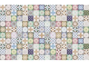 Tapeten Wohnen Haus Garten Heimwerken Wand Boden - - Marrakech in seiner buntesten Form. Das Motiv lässt die Betrachter:innen in die Ferne schweifen und sie von der Wärme und dem künstlerischen Gut Marrakechs träumen. Deutsches Qualitätsvlies (155 g/m²) mit samtiger Textiloptik, formstabil, strapazierfähig, geruchsfrei, glatt und umweltfreundlich. FSC®-zertifiziertes Produkt. Bahnbreite 100 cm. Unsere professionellen Fotografen und Designer sorgen für ein visuelles Erlebnis auf hohem Niveau. Vom Design bis zum Druck MADE IN GERMANY. Die wasserbasierten Latextinten sind völlig geruchsneutral und besitzen das GREENGUARD Siegel. Die Druckfarben sind lichtbeständig, wasserfest und sorgen für langanhaltende Farbbrillanz. Alle Materialien sind lösemittelfrei und unbedenklich im Innenraum. Für Kinder- und Schlafzimmer geeignet. Leichte und schnelle Anbringung ohne Blasen und Falten. Kleister (im Lieferumfang enthalten) auf die zu tapezierende Wand auftragen und die passgenauen Bahnen Stoß-an-Stoß an der Wand anbringen., Optik/Stil: Oberflächenstruktur: glatt, Optik: bedruckt, Farbbezeichnung: grau/blau/grün, Material: Materialeigenschaften: formstabil, Material: Vlies, Farbbeständigkeit: ausgezeichnet lichtbeständig, Montage: Einsatzbereich: Decke, Schräge, Tür, Wand, Art Verarbeitung: Wand einkleistern, Art Entfernung: restlos trocken abziehbar, Art Ansatz: gerader Ansatz, Maße Gewicht: Breite: 400 m, Länge: 250 m, Gewicht: 1,98 kg, Flächengewicht: 155 g/m², Lieferumfang: Anzahl ... Dieser Esstisch aus recyceltem Teakholz mit Mosaikmuster bietet ein einzigartiges Designelement für Ihr Zuhause. ![]() Esstisch STOLKOM 'Joe', braun (braun, schwarz, schwarz, braun), H:78cm, Tische, Runde Esstische Esstisch, Massivholz Teak recycelt, Tisch mit Mosaik Muster