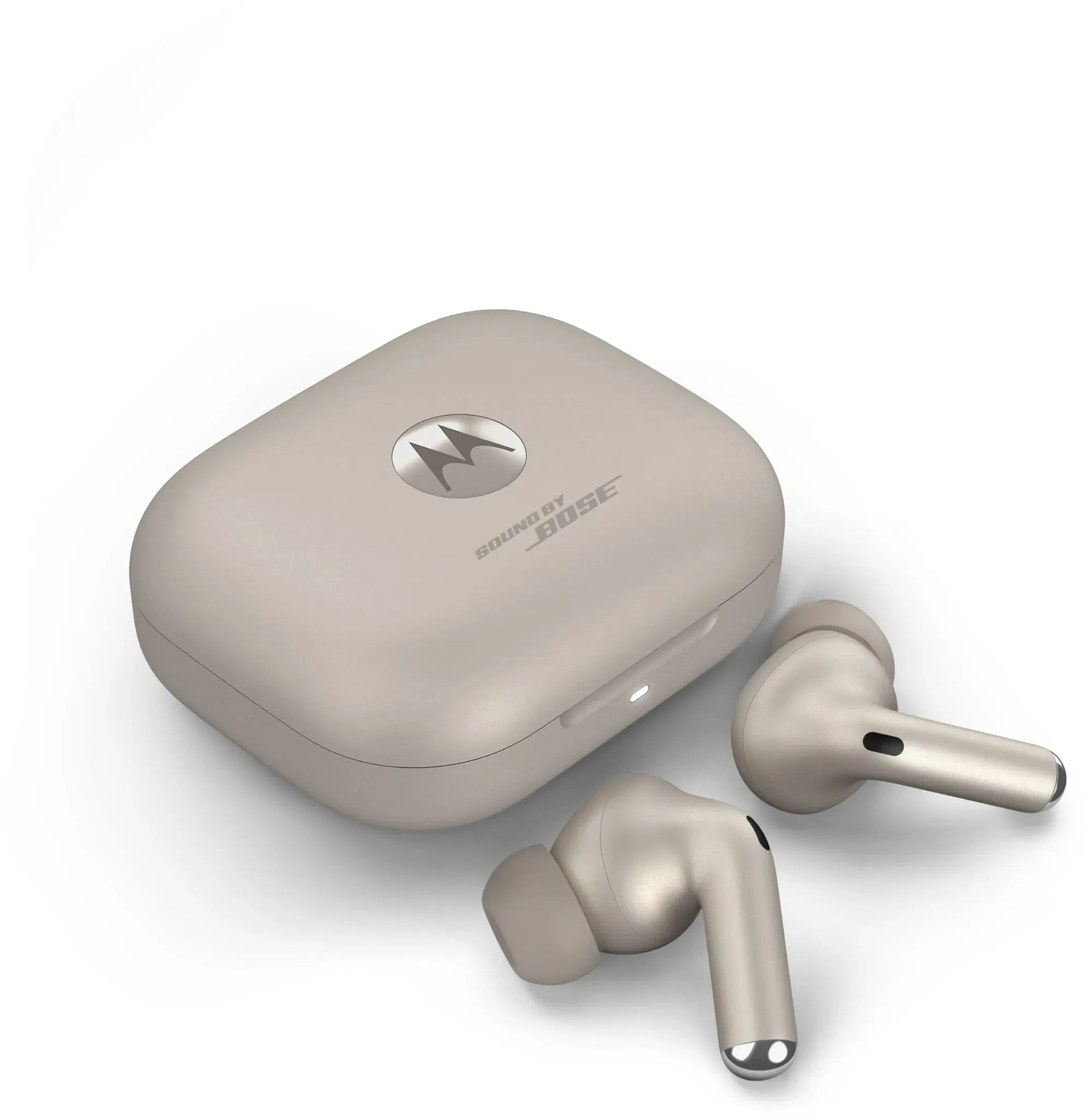 Gewöhnlich versandfertig in 4 bis 5 TagenMotorola Mobility Moto Buds+ Sound by Bose (Bluetooth 5.3 Earbuds, Dolby Head Tracking + Dolby Atmos, aktive Geräuschunterdrückung, kabelloses Laden, bis zu 38 Stunden),Beach Sand