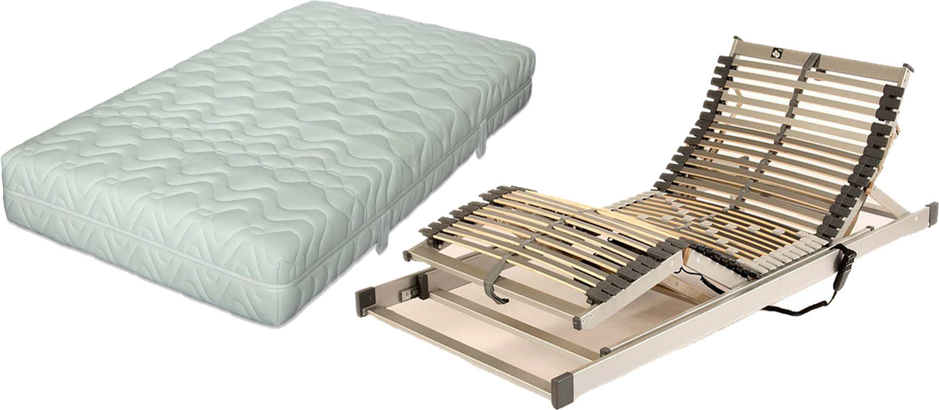 Malie - EAN: 4260185501754 - Malie Polar H3 5-Zonen Tonnentaschenfederkernmatratze in 100 x 200 cm Härtegrad: H3 Gesamthöhe: 19 cm Material: 5-Zonen-Tonnentschenfederkernmatratze mit 448 Federn auf Basis 100 x 200 cm. Der Matratzenkern ist zusätzlich mit einem Baumwoll-Trikot-Bzug ummantelt. Ausgeprägte Punktelastizität für eine sehr gute Stützung der Wirbelsäule. Extra stabile Seitenstege welche ein leichtes Aufstehen unterstützen. Geeignet für Lattenrost mit engen Leistenabständen bis ca. 3 cm. Bezug: Greenfirst-Doppeltuch-Bezug gegen Hausstaubmilben in Zonensteppung mit Klimafaser, leicht abnehmbar durch vierseitigem Reißverschluss und bis 60 Grad waschbar aus 63% Polyester und 37% Baumwolle und beidseitig mit Polypropylenvlies unterlegt. plusTechno-Flex EL Motorlattenrost elektrisch verstellbar und fertig montiert in 100 x 200 cmbelastbar bis 160 kgelektrisch verstellbarer, 2-motoriger 7-Zonen Qualitätslattenrost mit separater oder gleichzeitiger, stufenloser Kopf- und Fußteilverstellung durch Doppelantrieb mit Kabelfernbedienung. Die Nackenstütze passt sich dabei automatisch an. Individuelle Liegepositioneinstellung ohne Aufzustehen.Bauhöhe ca. 9,5 cmSorgt bei Schmerzen durch die stufenlose Verstellung gezielt für Abhilfe oder auch als Aufstehhilfe zu benutzen. Im Bett lesen und Fernsehen wird zum reinsten VergnügenAusführlichere Produktbeschreibungen finden Sie jeweils auf der Einzelproduktseite - bei kaufland.de - aus Yadore Produktdaten ![]() ![]() Malie Move - Motorlattenrost 28/44