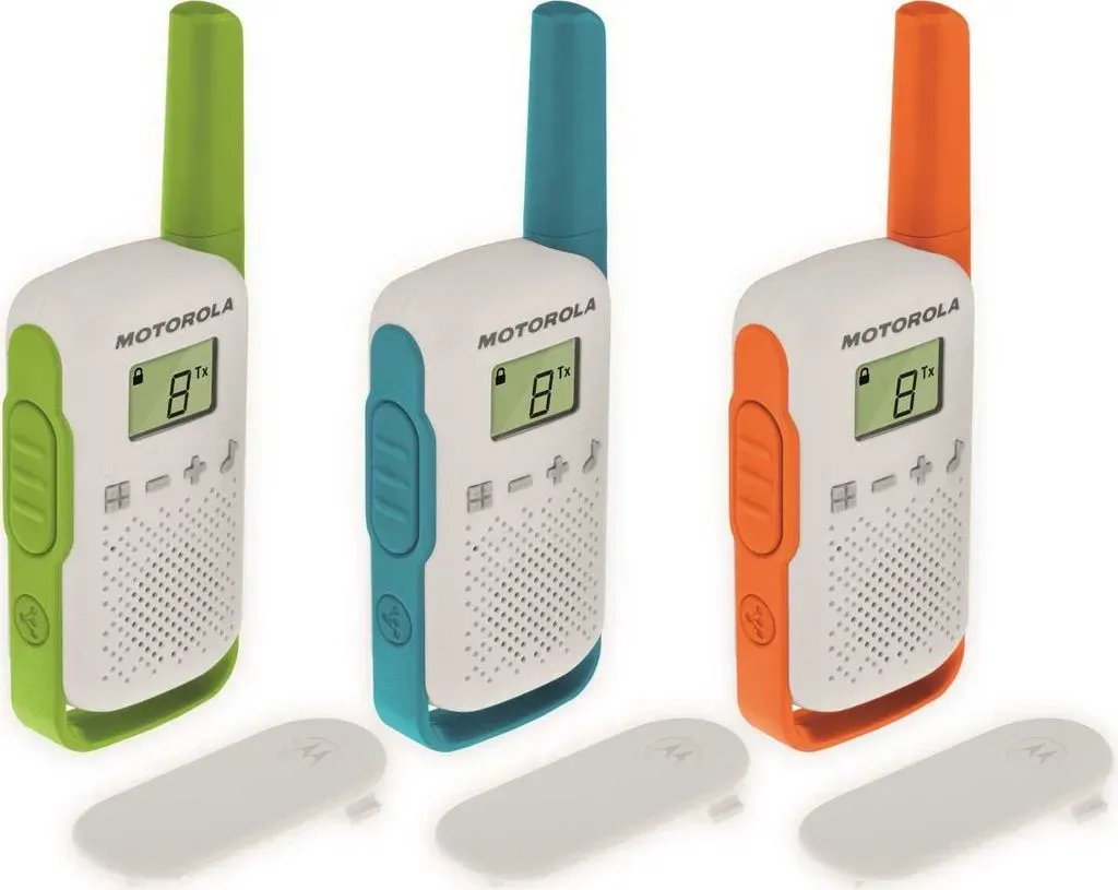 Motorola - EAN: 5031753007515 - Entdecken, spielen und in Verbindung bleiben ganz unkompliziert mit dem Motorola TALKABOUT T42 Dreierpack! Dieses Dreierpack Walkie-Talkies wurde für aktive Familien, abenteuerlustige Kinder und Freunde unterwegs entwickelt und ist perfekt, um drinnen und draußen in Kontakt zu bleiben. Dank der einfachen Kopplungsfunktion können Sie in Sekundenschnelle telefonieren. Das farbenfrohe Design, das übersichtliche LCD-Display und die Reichweite von bis zu 4 km sorgen jederzeit für Spaß und Sicherheit. Im Lieferumfang sind außerdem Aufkleber zur Personalisierung jedes Geräts und Clips zum bequemen Tragen enthalten. - bei metro.de - aus Yadore Produktdaten ![]() Motorola T42 Triple Pack Walkie PMR446, 16 Kanäle, 4 km, Bunt, Wasserdicht, Schnellkupplung