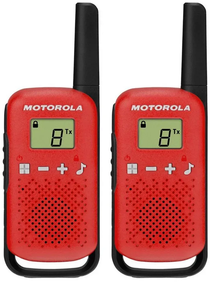 8 Händlerangebote bei billiger.de - Kategorie: Funkgeräte - Motorola - Einfach zu bedienen. Ob auf Erkundungstour, beim Camping, am Strand oder im eigenen Garten, das TALKABOUT T42 Walkie-Talkie ist perfekt, um zu Hause oder unterwegs in Kontakt zu bleiben. Das Setup ist dank der Easy Pairing-Funktion völlig unkompliziert und man kann per Knopfdruck sofort mit Freunden und Familie kommunizieren. Mit bis zu 16 Kanälen, LCD-Display, einer Reichweite von bis zu 4 km und einer Auswahl an Farben hält das T42 Sie in Verbindung, um jeden Moment zu genießen. - GTIN:5031753007508 Dieses Angebot ist empfehlenswert, da es ein 2er-Set in Rot zu einem sehr günstigen Preis anbietet. ![]() ![]() Motorola Talkabout T42 rot 2 Einheiten