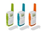 Motorola - EAN: 5031753007515 - Tragbar, Zwei-Wege Funkgerät, PMR, 446 MHz, 16 Kanäle, grün und weiß, blau und weiß, orange und weiß (Packung mit 3) - bei proshop.de - aus Yadore Produktdaten Dieses Angebot ist empfehlenswert, da es ein wasserbeständiges Triple-Set mit einfacher Kopplung zu einem guten Preis auf dem Amazon Marketplace anbietet. ![]() ![]() Motorola Solutions €“ T42 Triple Walkie Talkie Talkabout, Funkgeräte-Set mit 3 Einheiten, PMR446, 16 Kanäle, Reichweite 4 km, Mehrfarbig, einfache Kopplung, wasserbeständig
