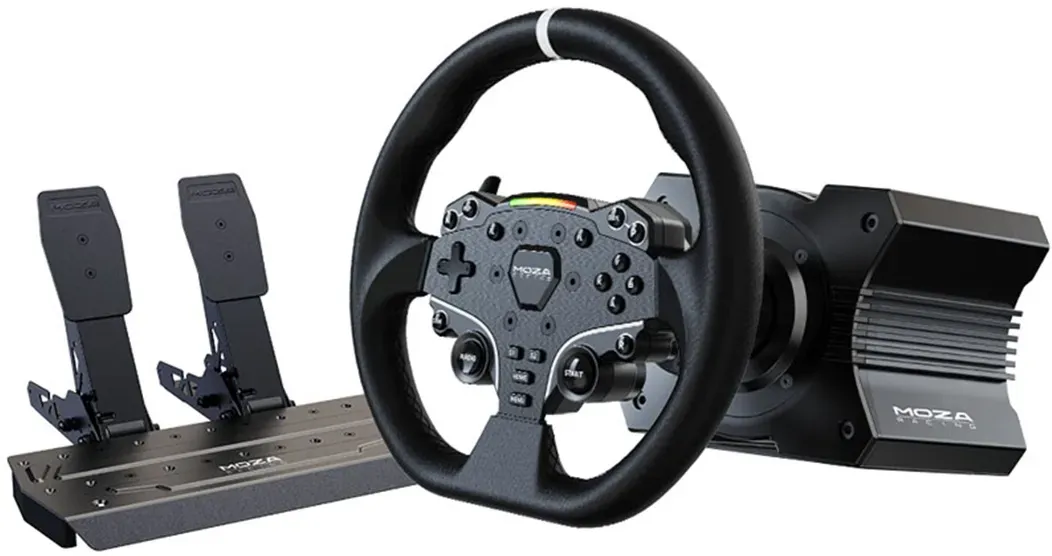 4 Händlerangebote bei billiger.de - Kategorie: Gaming-Zubehör - moza racing - Mit dem Moza R5 Racing Simulator-Set holst du dir ein perfekt aufeinander abgestimmtes Simulator-Set nach Hause. Es bietet dir alles, was du für den Einstieg in die virtuelle Rennszene benötigst. Durch das enthaltene Lenkrad, die Wheelbase, die Pedalerie und die Tischklemme bist du sofort startklar. - GTIN:0723497239493 Dieses Trucking Bundle Kit ist eine gute Wahl für alle, die ein komplettes Set für Truck-Simulationen suchen. ![]() ![]() MOZA Racing Trucking Bundle Kit Include R5 Direct Drive WheelBase, TSW Truck Wheel and SR-P Lite Pedals,Table Clamp for the Truck Wheel