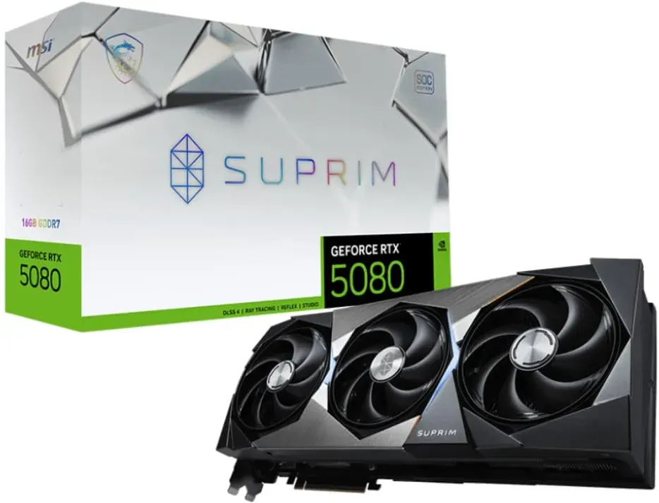 Für die Suche im Meta-Preisvergleich können Sie gezielt nach MSI GeForce RTX 5080 SUPRIM SOC suchen, um aktuelle Angebote und Preise zu vergleichen. Zusammengefasst ist die MSI GeForce RTX 5080 SUPRIM SOC eine sehr leistungsstarke und hochwertige Grafikkarte, die sich besonders für anspruchsvolle Gamer und professionelle Anwender eignet. Der Preis liegt im Premiumsegment, was durch die gebotene Leistung und Ausstattung gerechtfertigt ist. Jetzt live Suche nach msi geforce rtx 5080 suprim soc starten! Msi geforce rtx 5080 suprim soc Angebote aus dem beliebtesten Preisbereich*Durch Käufe über Links zu Händlern kann diese Website eine Provision erhalten, u.a. durch das eBay Partner Network und das AmazonPartnerNet![]() ![]() MSI GeForce - RTX 5080 eBay 16G Suprim SOC | OVP mit Rechnung