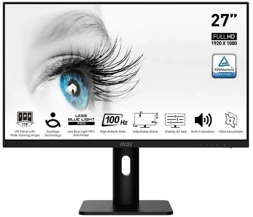 MSI - EAN: 4711377034999 - Widerstandsfähig und bahnbrechend die MSI Business- & Productivity-Serie!Für alle Fälle gerüstet, mit den Produkten der MSI Business- & Productivity-Serie. Für ergonomisches sowie sicheres ArbeitenMSI Eye Care: Anti-Flicker + 'Less Blue Light'-Technologie + Anti-Glare-Display Echte Farbtreue mit Less-Blue-Light-PROLess-Blue-Light-PRO mit Hardware-Filter-Basistechnologie schützt die Augen, währenddessen lebendige Farben und Details erhalten bleiben. Perfekte PositionEine angemessene Arbeitsposition wirkt sich nicht nur positiv auf die Arbeitszufriedenheit und die Produktivität aus, sondern kann auch zur allgemeinen Gesundheit und der Lebensqualität beitragen. Perfekte 27'-Bildschirmgröße für den Arbeitsplatz zum Programmieren, Codieren und Gestalten von Webseiten TüV-zertifiziertes Display schützt das Augenlicht und hält die Sehfähigkeit aufrecht Die Anti-Flicker-Technologie schützt die Augen vor überanstrengung und Ermüdung Die Less Blue Light PRO-Technologie schützt die Augen und sorgt gleichzeitig für lebendige Farben und Details. Ergonomisch gestalteter Ständer mit Neige-, Dreh-, Höhen- und Schwenkfunktion Das IPS-Panel sorgt für eine atemberaubende Bildschärfe 100 Hz Bildwiederholfrequenz für ein besseres Seherlebnis Flexibilität für mehrere Geräte durch mehrere Eingangsquellen: DisplayPort, HDMI und D-Sub (VGA) VESA-Mount Unterstützung - bei ditech.at - aus Yadore Produktdaten ![]() ![]() MSI PRO MP273APDE (1920 x 1080 Pixel, 27"), Monitor, Schwarz