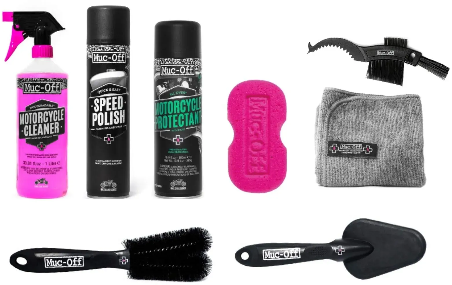 Kategorie: Sonstiges Fahrradzubehör - Muc-Off - GTIN:5037835284003 - Das Ultimate Bicycle Kit ist die ultimative Waffe im Kampf gegen den Schmutz. Das als Werkzeugkiste getarnte Reinigungsset ist eine umfassende Komposition von Muc-Off Produkten zur Reiniung und Pflege der Bikes. Die Kiste lässt sich sicher und einfach in Werkstatt, Auto oder Garage verstauen oder einfach als Werkzeugkiste verwenden. Inhalt: - 1x Bike Cleaner (1 Ltr) - Reiniger - 1x Bike Spray (500ml) - Nachbehandlung - 1x Wet Lube (50ml) - Kettenschmiermittel - 1x Drivetrain Cleaner (250ml) - Kettenreinigung - 1x Microfibre Cloth - Reinigungstuch - 1x Detailing Bürste - 1x Soft Washing Bürste - 1x Two Prong Bürste - 1x Claw Bürste - 1x Microcell Schwamm - 1x Werkzeugkiste - 96,99 Euro bei Fahrrad-XXL - gefunden von billiger.de Dieses Motorrad-Reiniger Ultimate Moto Kit ist eine ausgezeichnete Wahl für die umfassende Reinigung und Pflege von Motorrädern für 99.98 Euro. ![]() ![]() Muc-Off Motorrad-Reiniger Ultimate Moto Kit
