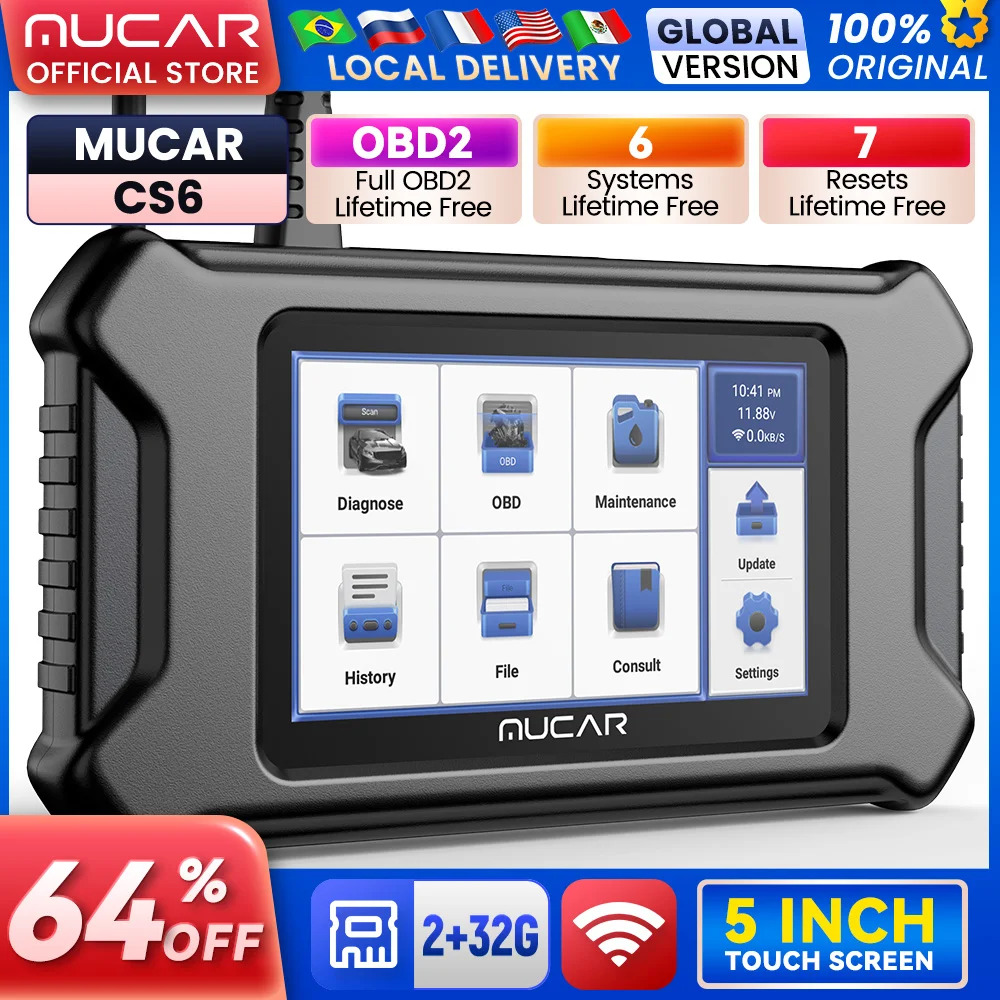 Auf Lager Versand durch AmazonOBD2 Diagnosegerät, MUCAR CS6 Diagnosegerät Auto Mit 6 System(ECM/TCM/ABS/SRS/TPMS/BCM) + 7 Reset-Funktion(Öllampen/EPB/SAS/TPMS/TBA/ETS/ABS/DPF), Auto Auslesegerät Für AutoVIN, Kostenlose Updates