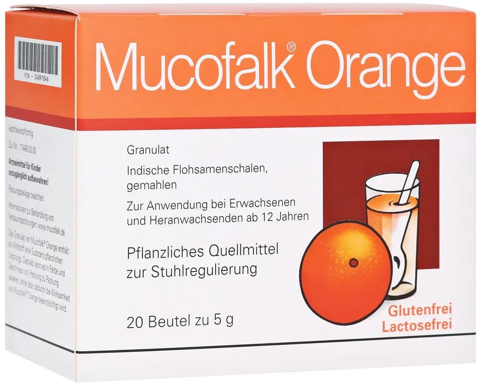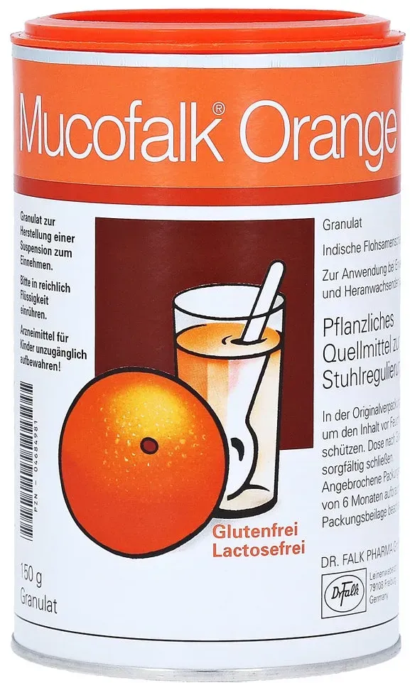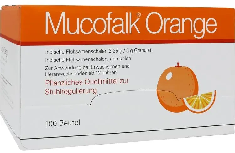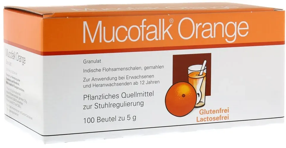 EAN: 4150048918754 - Pflanzliches Quellmittel zur Stuhlregulierung. Mucofalk wird aus pflanzlichen Samen von Plantago ovata (Indische Flohsamen, auch als Ispaghula bezeichnet) gewonnen. Das Präparat besteht überwiegend aus der Epidermis und den angrenzenden kollabierten Schichten des Samens, die eine hohe Wasserbindung und Quelleigenschaft besitzen. Chronische Obstipation; Erkrankungen, bei denen eine erleichterte Darmentleerung mit weichem Stuhl erwünscht ist, z. B. bei Analfissuren, Hämorrhoiden und nach operativen Eingriffen im Enddarmbereich. Unterstützende Therapie bei Durchfällen unterschiedlicher Ursache sowie bei Reizdarm. - bei aponeo.de - aus Yadore Produktdaten Dies ist das günstigste Angebot für 100 Beutel und somit eine hervorragende Wahl für regelmäßige Nutzer, die Portionsbeutel bevorzugen. ![]() ![]() Dr. Falk Pharma Mucofalk Orange Granulat Beutel 100 St.
