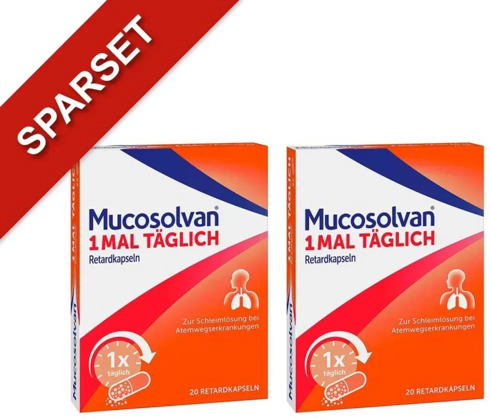 A. Nattermann & Cie - MUCOSOLVAN 1x täglich Retardkapseln Schleimlöser bei Husten 2x20 stk - bei apolux.de - aus Yadore Produktdaten ![]() ![]() A. Nattermann & Cie. GmbH MUCOSOLVAN 1x täglich Retardkapseln Schleimlöser bei Husten