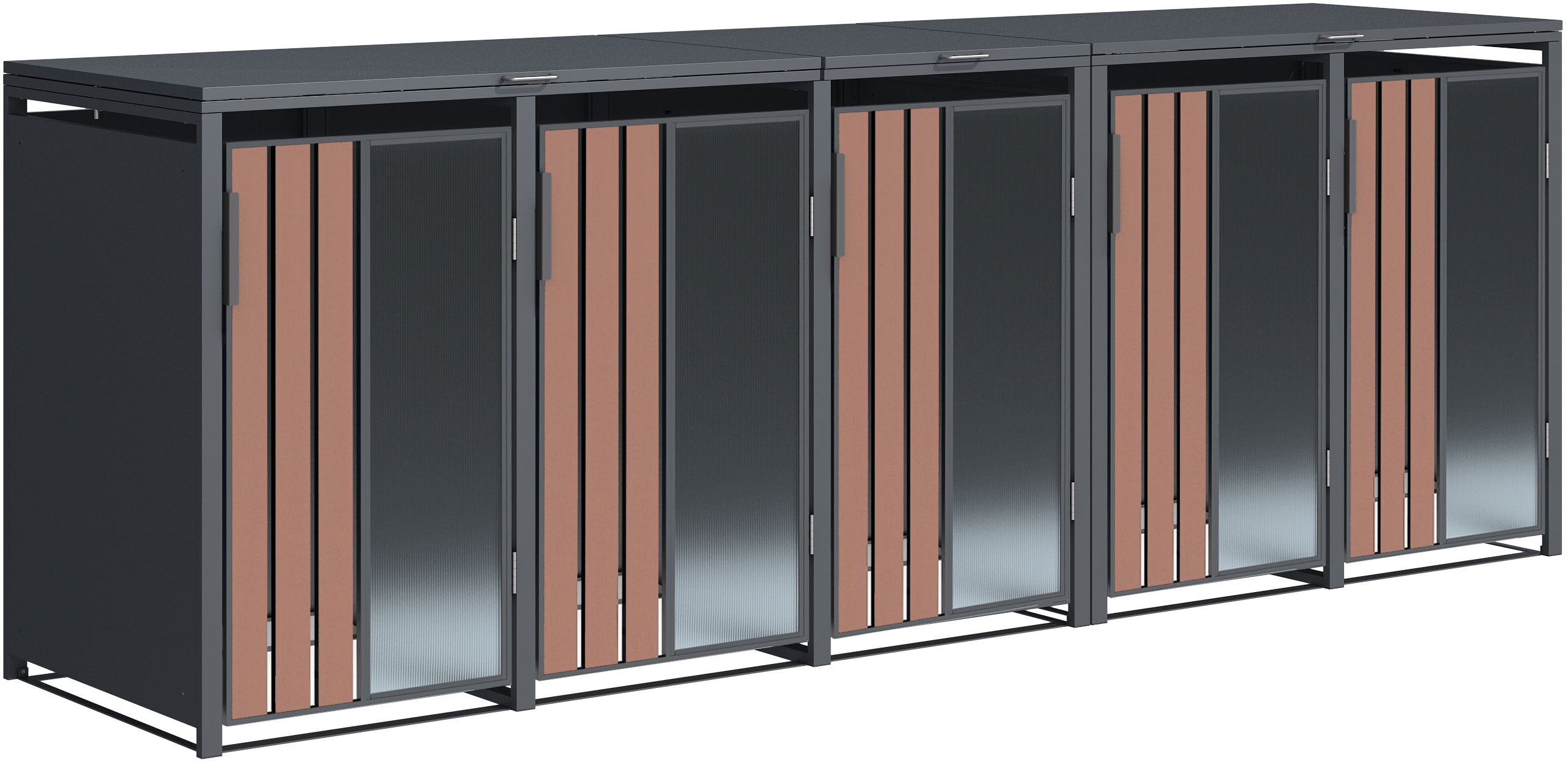 Der angezeigte Preis könnte seit dem letzten Update gestiegen sein - EAN: 4262519770775 - Farbe Material: Farbbezeichnung: Anthrazit / Holzoptik, Material: Stahl, Maße Gewicht: Höhe: 116 cm, Breite: 330 cm, Tiefe: 80 cm, Gewicht: 137 g, Hinweis Maßangaben: Alle Angaben sind ca.-Maße., Ausstattung: Art Montage: stehend montierbar - Zustand: NEW - bei BAUR Versand - gefunden von Buycentral Diese MBOX24 Mülltonnenbox bietet Platz für 4 Mülltonnen à 240 Liter und ist eine moderne, anthrazitfarbene Lösung zur optischen Aufwertung des Außenbereichs. ![]() ![]() MBOX24 MODERN Mülltonnenbox 4er für 240 Liter Mülltonne | Anthrazit | Mülltonnenverkleidung | Mülltonnenhaus | Box für Mülltonnen | Mülltonnenunterstand | Mülltonneneinhausung