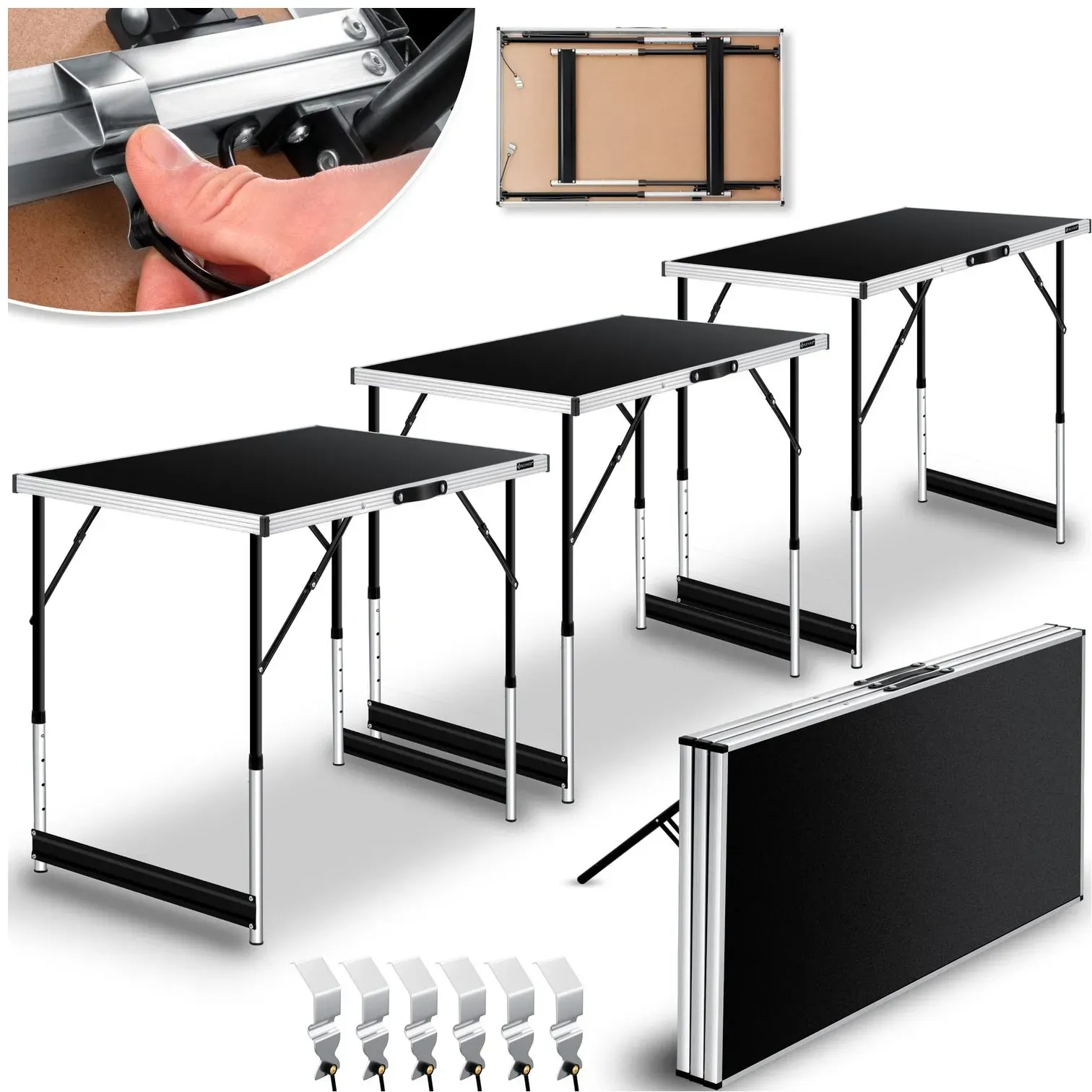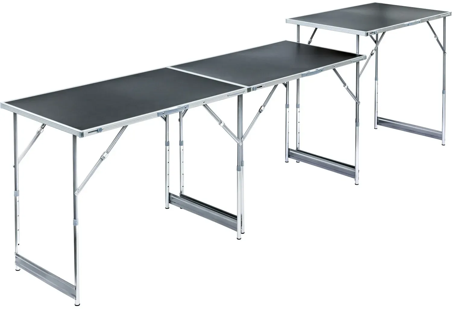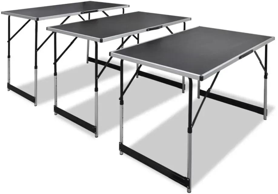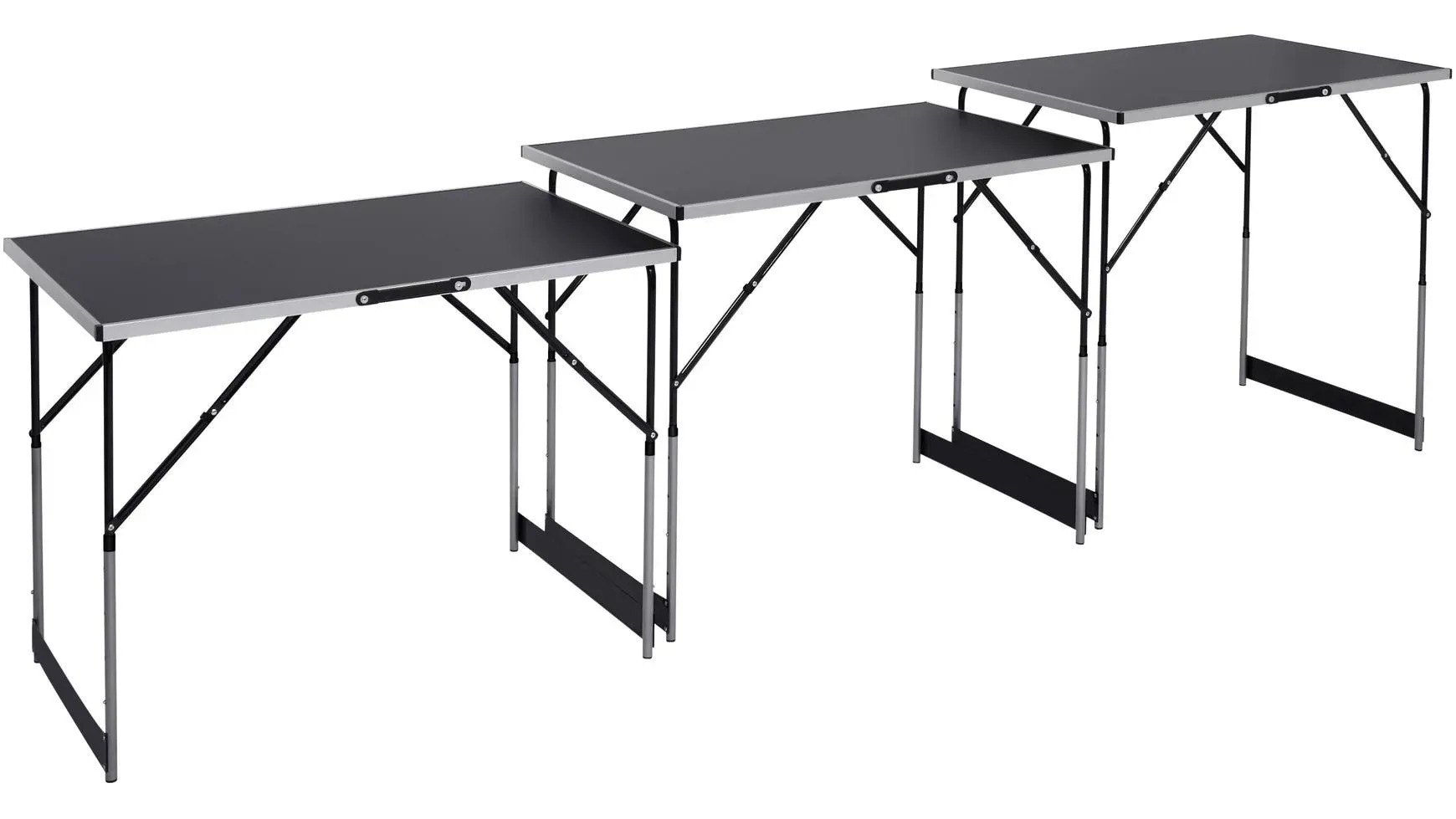 keine Angabe Gewöhnlich versandfertig in 2 bis 3 WochenJuskys Multifunktionstisch 3 teilig - klappbar, höhenverstellbar - Alu Klapptisch 100x60 cm - Flohmarkt, Tapeziertisch, Campingtisch - Tisch Schwarz