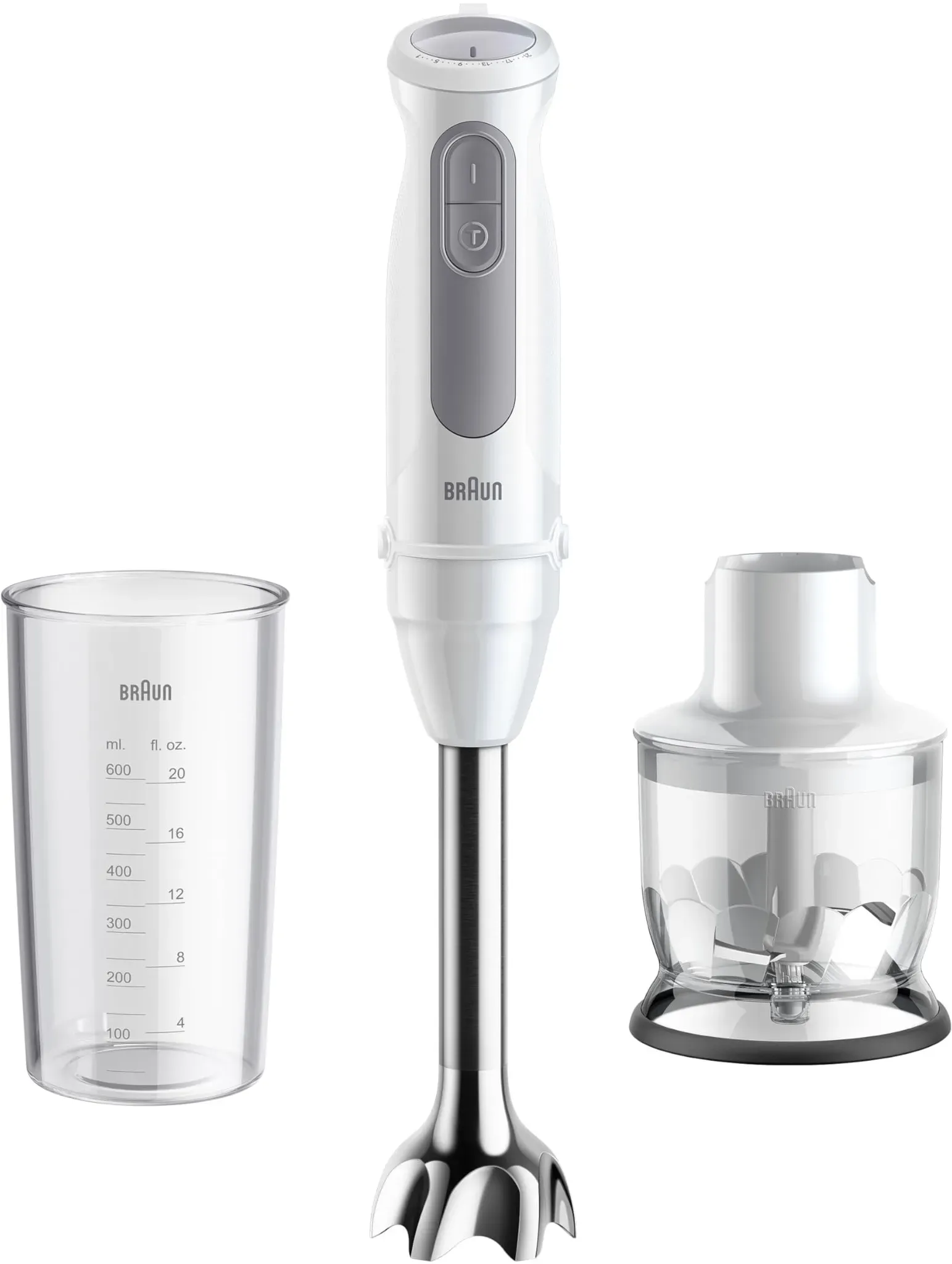 2 Händlerangebote bei billiger.de - Kategorie: Mixer - Braun - LEISTUNGSSTARK UND LEISE: Der 1000-Watt-Motor ist besonders kraftvoll, leise und kompakt und rt perfekte Ergebnisse bei all Ihren Rezepten POWERBELL PLUS TECHNOLOGIE: Patentierte Technologie mit einer erweiterten Schneidefläche, die das Pürieren von Lebensmitteln in Sekundenschnelle ermöglicht. Die Splash Control Technologie verhindert Spritzer, damit Sie und Ihre Küche sauber bleiben 23 GESCHWINDIGKEITEN & TURBO: Das variable Einhand-Geschwindigkeitsrad bietet 21 verschiedene Einstellungen. Die exakte Geschwindigkeitskontrolle rt maximale Präzision beim Mixen von Smoothies, Dips und Soßen EASYCLICK PLUS SYSTEM: Zwei Knöpfe und ein Handgriff sorgen für einen schnellen und einfachen Wechsel des gesamten EasyClick Plus-Zubehörs zum Kochen und Backen EINFACHE HANDHABUNG: Der ergonomische Griff ist oben schlanker und ermöglicht eine bessere Kontrolle und Handhabung in jeder Kochsituation. Der 600-ml-Kunststoffbecher und der 350-ml-Zerkleinerer sind BPA-frei - GTIN:8021098004390 Dieser Pro-Stabmixer bietet eine hohe Leistung und viele Geschwindigkeitsstufen für anspruchsvolle Aufgaben. ![]() ![]()