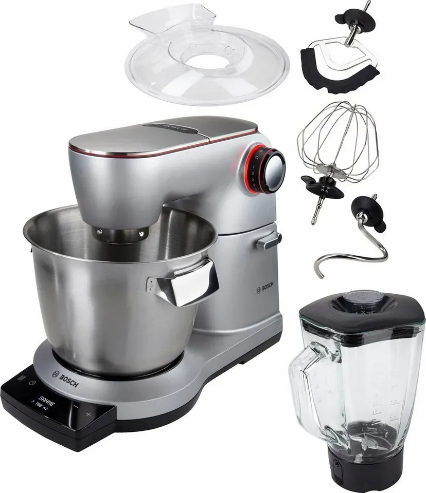 Kategorie: Küchenmaschinen - Bosch - GTIN:4242002938103 - Die OptiMUM Küchenmaschine im schlanken, edlen Design. Mit Automatik-Programmen SensorControl Plus und 1500 Watt Motor-Power für stets perfekte Ergebnisse. Perfekte Ergebnisse: extrem starker 1.500 Watt Motor auch für sehr schwere Teige und große Mengen geeignet. Extra große, gebürstete 5.5l Edelstahlschüssel: ideal für die Zubereitung großer Teigmengen, wie 3.5 kg Kuchenteig, auf einmal. Vollmetallgehäuse: robustes Vollmetallgehäuse mit hochwertigen Details für lange Freude am Gerät. SensorControl Plus: Automatikprogramme für Teig, Sahne und geschlagenes Eiweiß. OptiMUM Patisserie-Set: Rührbesen, Schlagbesen, High Performance Knethaken aus Edelstahl für perfekte Ergebnisse. - 639,99 Euro bei Media Markt Online Shop - gefunden von billiger.de Dieses Angebot von Amazon Marketplace Kitchen ist das teuerste in der Liste, bietet aber möglicherweise zusätzliche Vorteile wie schnellen Versand oder spezielle Garantiebedingungen. ![]() ![]() Bosch Küchenmaschine Serie 8 MUM9DT5S41, Edelstahl-Schüssel 5,5 L, integrierter Timer, ohne Waage, diverses Zubehör, Planetenrührwerk, Profi-Knethaken, Schlag-, Silikonbesen Edelstahl, 1600 W, silber