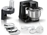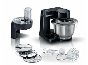 Auf Lager Versand durch AmazonBosch Küchenmaschine Serie 2, kleine Küchenmaschine, Edelstahl-Schüssel 3,8 L, Planetenrührwerk, Knethaken, Schlag-, Rührbesen Edelstahl, Durchlaufschnitzler, 3 Scheiben, 700 W, schwarz, MUMS2EB01