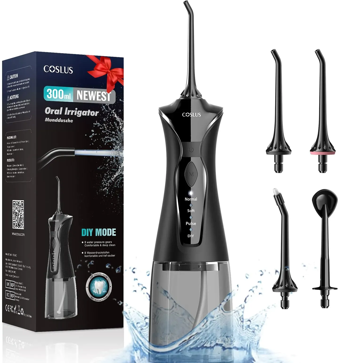 Kategorie: Elektrische Zahnbürsten - coslus - GTIN:4894981584651 - Tiefenreinigung, verbesserte Zahnfleischgesundheit Durch den kontinuierlichen Wasserfluss die Munddusche werden bis zu dreimal mehr Speisereste entfernt, was 50 % effektiver ist als traditionelle Zahnseide, und sie ist ideal für blutendes Zahnfleisch und empfindliche Zähne. Ausgestattet mit 4 Multifunktionsdüsen, erfüllt sie auch die Bedürfnisse einer umfassenden Mundpflege für Zähne, Zahnfleisch und Zunge. Hinweis: Die Verpackung kann variieren (neu oder alt), aber der Inhalt ist gleich. Verbesserte 4 Modi & 11 Intensitäten DIY-Modus Die Munddusche Kabellos wurde auf den DIY-Modus mit 8 wählbaren Wasserdrücken umgerüstet, sodass Sie den Reinigungsmodus an den Zustand Ihrer Zähne und Ihres Zahnfleisches anpassen können, geeignet für Menschen jeden Alters. Es verfügt außerdem über eine Speicherfunktion zum Aufzeichnen Ihrer Nutzungsgewohnheiten, sodass Sie es beim nächsten Mal problemlos verwenden können, ohne dass wiederholte Anpassungen erforderlich sind. BPA-Free Upgraded 300ml Wassertank Die Munddusche kommt mit 300ml großen abnehmbaren Wassertank ausgestattet, keine wiederholten Nachfüllungen, wie einzige Füllung kann kontinuierliche Reinigung für 90s. Das Design des Wassertanks spart nicht nur Zeit, da das Wasser einfach nachgefüllt wird, sondern löst auch das Problem, dass traditionelle Modelle schwer zu reinigen und zu trocknen sind. Es ist einfach, jeden Winkel gründlich zu reinigen, so dass Ihre ... Diese Munddusche mit 800ml Tank ist ideal für den Heimgebrauch und bietet Hochdruckreinigung für eine gründliche Mundhygiene. ![]() Munddusche Dental Wasser Flosser für Zähne Hochdruck Elektrische Dental Irrigator Wasser Flosser Mund Waschmaschine 800ML