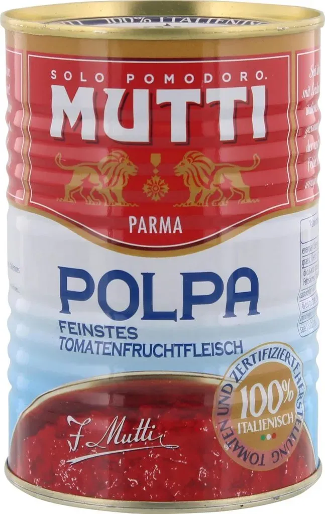 3,72 /kg - Kategorie: Feinkost & Internationale Spezialitäten - Mutti - GTIN:0000080042556 - Italienische Tomatenhülsenfrüchte - Mutti 400g Mutti - Tomatenfruchtfleisch - konzentrierte TomatenDas geschmacksintensive Mutti-Tomatenmark wird aus in der italienischen Sonne gereiften Tomaten hergestellt, ohne Konservierungsstoffe oder künstliche Zusätze. Fast 100% der Zutaten sind italienische Tomaten und nur 0,2% Salz! In der Dose finden Sie geschälte Tomaten, die in feine Scheiben geschnitten sind, um die Zubereitung köstlicher Gerichte zu erleichtern. Mutti-Tomatenmark ist in einer praktischen 400-g-Dose erhältlich.Sehen Sie, wofür Sie das Tomatenmark verwenden könnenAufgrund seiner Form ist das Tomatenmark eine hervorragende Grundlage für viele schmackhafte Gerichte. öffnen Sie einfach die Dose und geben Sie den Inhalt zu Ihrem Gericht! So können Sie zum Beispiel aromatische italienische Saucen mit Fleisch oder Gemüse zubereiten, je nach persönlicher Vorliebe. Tomatenmark ist auch ideal für die Zubereitung einer aromatischen Tomatensuppe in cremiger Form. Sie können es auch als Basis für Soßen verwenden, die Sie zu kleinen Vorspeisen servieren.Sehen Sie, warum Mutti-Tomatenmark so besonders schmecktDas Mutti-Tomatenmark wird von einer sorgfältig ausgewählten Quelle direkt aus Italien importiert. Das Fruchtfleisch von Mutti besteht aus den frischesten und reifsten Tomaten, die reich an Fettsäuren sind, viele Antioxidantien enthalten und den Körper mit wichtigen Vitaminen und ... Dieses Angebot ist empfehlenswert, da es Mutti Polpa feinstes Tomatenfruchtfleisch zu einem attraktiven Einzelpreis anbietet. ![]() ![]()