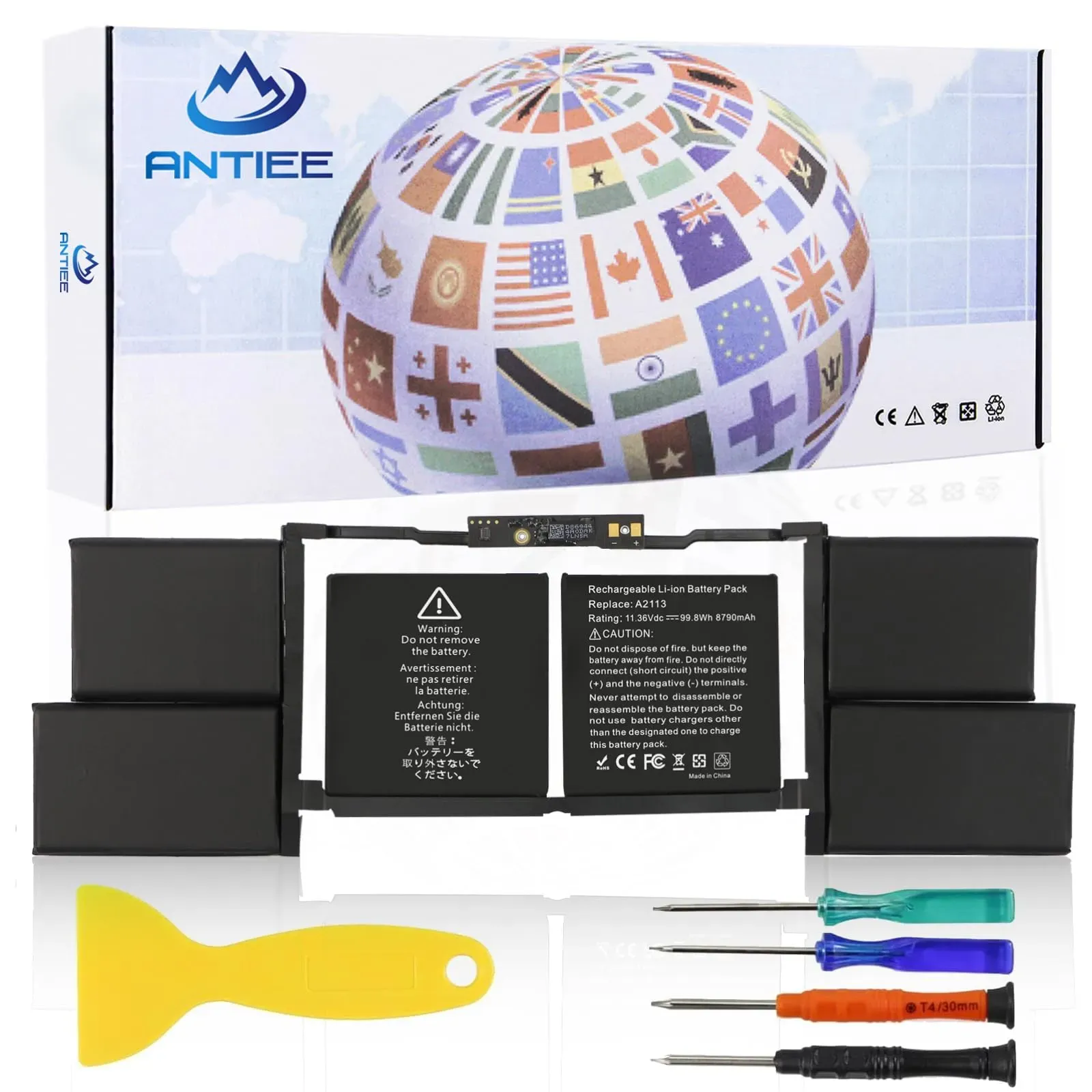 Auf Lager Versand durch AmazonANTIEE A2141 A2113 Batterie Replacement Pour MacBook Pro 16-inch (Release 2019 2020) EMC 3347 MVVL2 MVVL2LL/A MVVM2 MVVM2LL/A MVVJ2 MVVJ2LL/A MVVK2 MVVK2LL/A 11.36V 99.8Wh 8790mAh