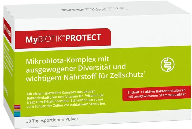 Mybiotik protect META PreisvergleichMit dem Meta-Preisvergleich suchen Sie gleichzeitig bei den groen Preisvergleich Portalen!Jetzt live Suche nach mybiotik protect starten! Mybiotik protect KaufberatungMyBIOTIK PROTECT ist ein Nahrungsergänzungsmittel in Pulverform, das einen speziellen Komplex aus 11 aktiven Bakterienkulturen (darunter verschiedene Bifidobakterien, Laktobazillen, Enterokokken und Laktokokken) sowie Vitamin B2 enthält. Es dient vor allem der Unterstützung und dem Aufbau der Darmflora, beispielsweise nach einer Antibiotika-Behandlung, und trägt durch Vitamin B2 zum Erhalt der Darmschleimhaut und zum Schutz der Zellen vor oxidativem Stress bei[1][3][7]. Wichtig bei der Anwendung ist, dass zwischen der Einnahme von MyBIOTIK PROTECT und Antibiotika ein Abstand von mindestens 2 Stunden eingehalten wird, um die Wirksamkeit der Bakterienkulturen nicht zu beeinträchtigen[1]. Beliebte Produktmerkmale: