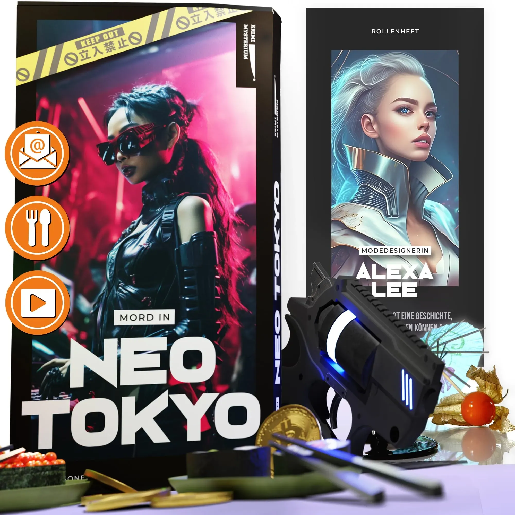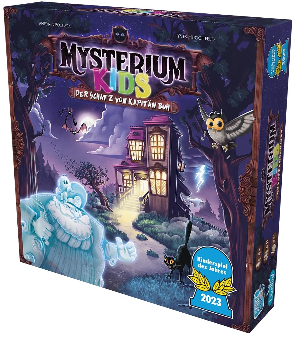 Kategorie: Gesellschaftsspiele - Libellud - GTIN:3558380100546 - Mysterium Kids: Der Schatz von Kapitän Buh ist die kinderfreundliche Variante des kooperativen Familienspiels Mysterium. Findet gemeinsam den Schatz von Kapitän Buh, bevor die Nacht vorüber ist In jeder Runde schlüpft einer von euch in die Rolle des Geistes von Kapitän Buh. Der Geist benutzt das Tamburin und gibt den anderen Spielern einen akustischen Hinweis zu einem Objekt aus der Villa Mit Hilfe des Tamburins müsst ihr zum Beispiel eine tickende Sanduhr, einen Hammer oder einen platzenden Luftballon nachahmen. Die anderen Spieler müssen das richtige Objekt erraten Habt ihr den Begriff richtig erraten, erhaltet ihr einen Teil des Schatzes. Für vollständige Sterne erhaltet ihr 1 Punkt. Die Partie endet, sobald ihr alle Runden auf der Mondtafel gespielt habt 2-6 Spieler | Ab 6+ Jahren | 21 Minuten Spielzeit je Partie | Kinderspiel des Jahres 2023 | Autoren: Antonin Boccara und Yves Hirschfeld | Spiel in Deutsch, Hersteller: Asmodee - 19,50 Euro bei Amazon Marketplace Toys - gefunden von billiger.de Das "Krimi Mysterium" bietet ein Krimidinner-Erlebnis für zuhause, ideal für eine thematische Spielrunde. ![]() ![]() Krimi Mysterium Krimidinner für zuhause 4 bis 6 Personen | Mord in Neo Tokyo | Das Krimi Spiel ab 16 Jahren | Ideal als Krimi Dinner für eine mörderische Dinnerparty