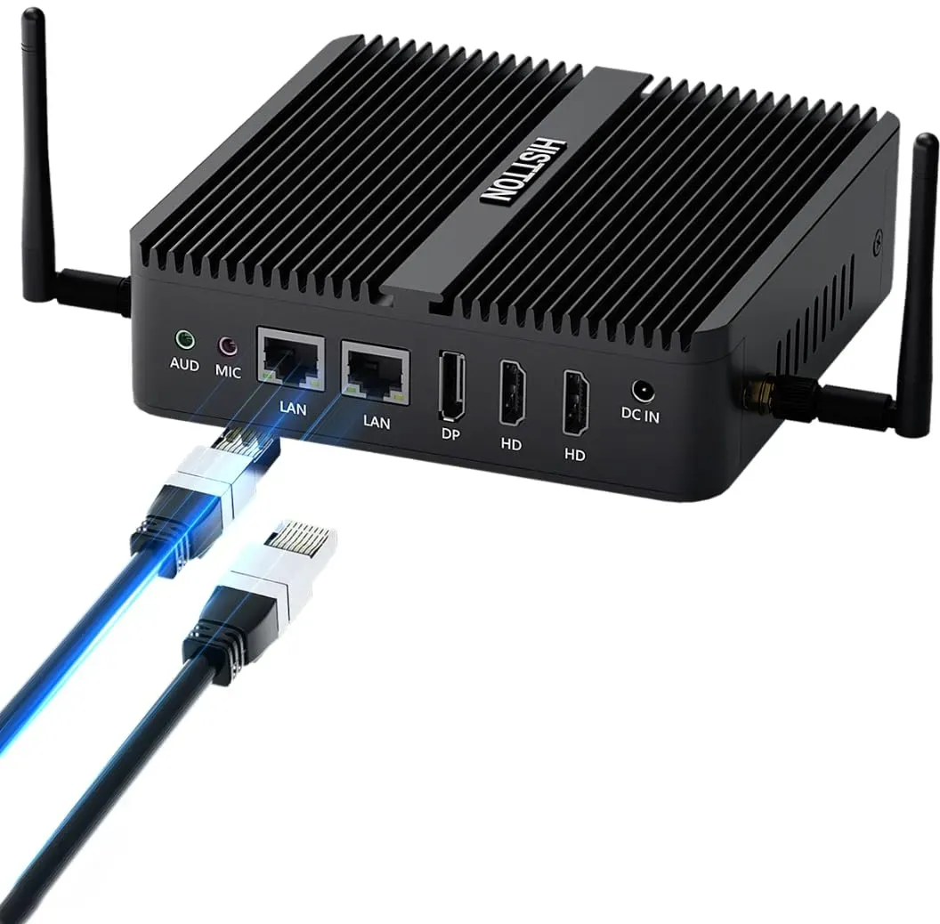 Zustand: Neu - Mini-PCs - MeLE MeLE Technologies (Shenzhen) Co., Ltd. - Quieter 4C - EAN: 6973666054844 - Hochauflösendes HDMI 4K Display und voll funktionsfähiger USB-C mit USB PD3.0 - Erleben Sie maximale visuelle Qualität mit Unterstützung für drei Displays dank der Ultra UHD Grafikkarte (4K@60Hz). Zwei HDMI2.0 Anschlüsse und ein voll funktionsfähiger USB-C ermöglichen gleichzeitige Triple-Display-Nutzung, was Ihre Arbeitsleistung steigert. 12th Gen Alder Lake-N100 Prozessor - Der MeLE Mini PC ist mit dem leistungsstarken 12th Gen Alder Lake-N100 Prozessor ausgestattet. Mit 4 Kernen und 4 Threads und Geschwindigkeiten von bis zu 3,4GHz bietet dieser Mikro-PC eine Leistungssteigerung von 30% im Vergleich zu seinen Vorgängern, dem Celeron N5095 und N5105. Hohe Leistung und erweiterbarer Speicher - Genießen Sie schnellere Rechenleistung mit 8GB LPDDR4x RAM (4266MHz) und 128GB Speicher (128GB eMMC + ein leerer M.2 2280 Key M Slot für PCIe 3.0x4 3940MB/s). Ideal für Home-Office, Geschäftsbüros, IoT, Schulbildung und Werbetafeln. Elegantes Design mit Lüfterloser Kühlung - Dieser lüfterlose PC verfügt über ein passives Kühlsystem, das Überhitzung verhindert. Es bietet eine ruhige und stabile Rechenumgebung und unterstützt den 24/7-Betrieb. Der einzigartige Entwurf gewährleistet Staubresistenz und geräuschloses Arbeiten. Kein vorinstalliertes Betriebssystem! Unterstützung für Multi-OS - Erleben Sie mühelose Multi-OS Kompatibilität mit dem MeLE Fanless Mini PC Quieter 4C, der ... Dieser HAICOTECH Firewall Mini PC ist mit 211.68 Euro eine leistungsstarke und lüfterlose Lösung für anspruchsvolle Netzwerkanwendungen. ![]() ![]() HAICOTECH Firewall Mini PC 12th Gen Twin Lake N150-Upgraded N100, 8G DDR5 RAM 128G SSD, 6x2.5GbE i226-V LAN Micro Router Computer, Fanless, AES-NI, OPNsense