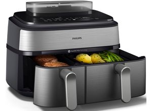 lieferbar-am nächsten Werktag bei dirPhilips Heißluftfritteuse NA555/00 Steam Airfryer 5000 Series Dual Basket, 9L Kapazität (3L+6L), 2750 W, mit Dampfgar-Funktion; Silber/Edelstahl silberfarben