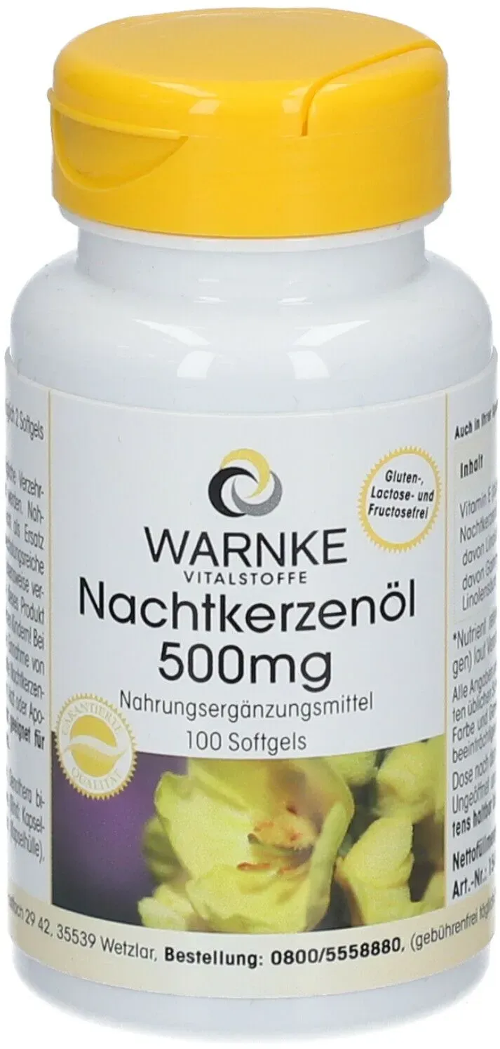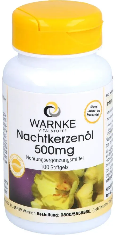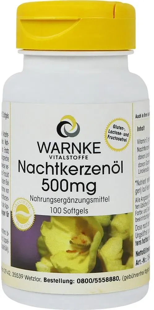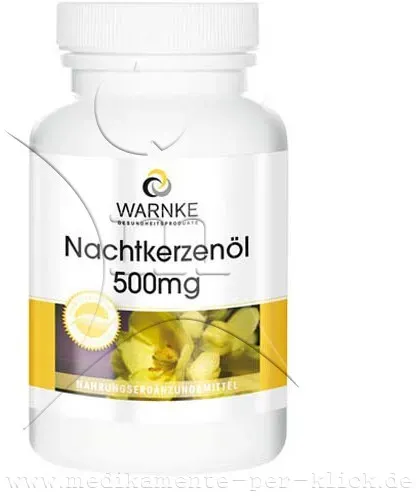 0.07 / 1 ct - Kategorie: Nahrungsergänzungsmittel - Warnke Vitalstoffe GmbH - GTIN:4260009872619 - PZN:02861551 - 02861551: Warnke Vitalstoffe GmbH - NACHTKERZENöL 500 mg Kapseln 100 St - 7,35 Euro bei UnserekleineApotheke - gefunden von billiger.de ![]() ![]() Warnke Vitalstoffe GmbH NACHTKERZENöL 500 mg Kapseln 100 St