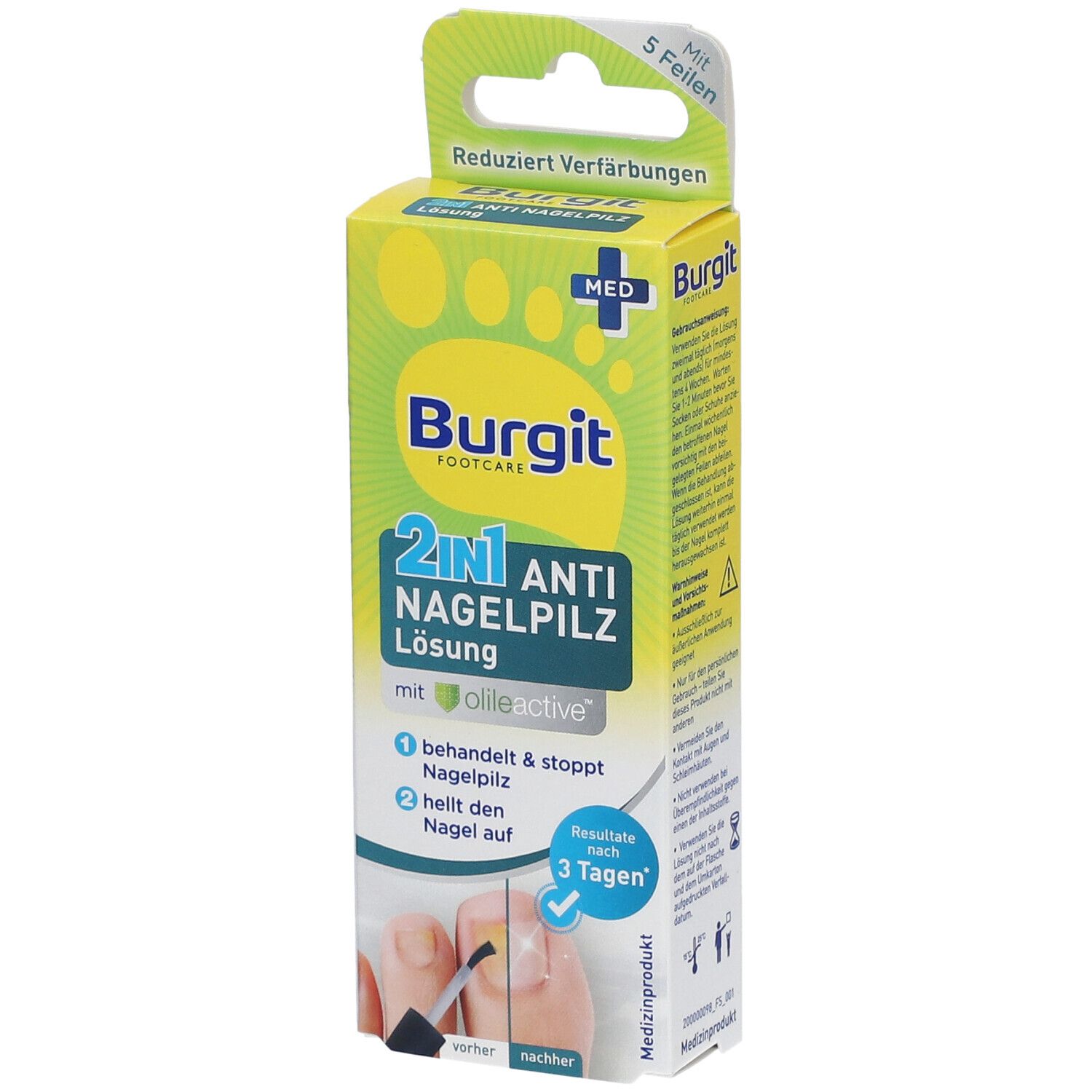 497,5 / 100ml - Der angezeigte Preis könnte seit dem letzten Update gestiegen sein - EAN: 9005356017666 - Burgit Anti Nagelpilz Stift Ein innovativer Wirkstoffkomplex mit Olive-Leaf Active TM und Algae-Active TM (patentierte Olivenblatt- und Algenextrakte) nimmt dem Pilz den Nährboden zum überleben. So ist es möglich den Nagelpilz effektiv zu behandeln.... - Zustand: NEW - bei SHOP APOTHEKE - gefunden von Buycentral Diese Tinktur ist eine gute Alternative für Anwender, die keine Nagellacke bevorzugen. ![]() Evolsin Anti-Nagelpilz liquid 10 ml Tinktur