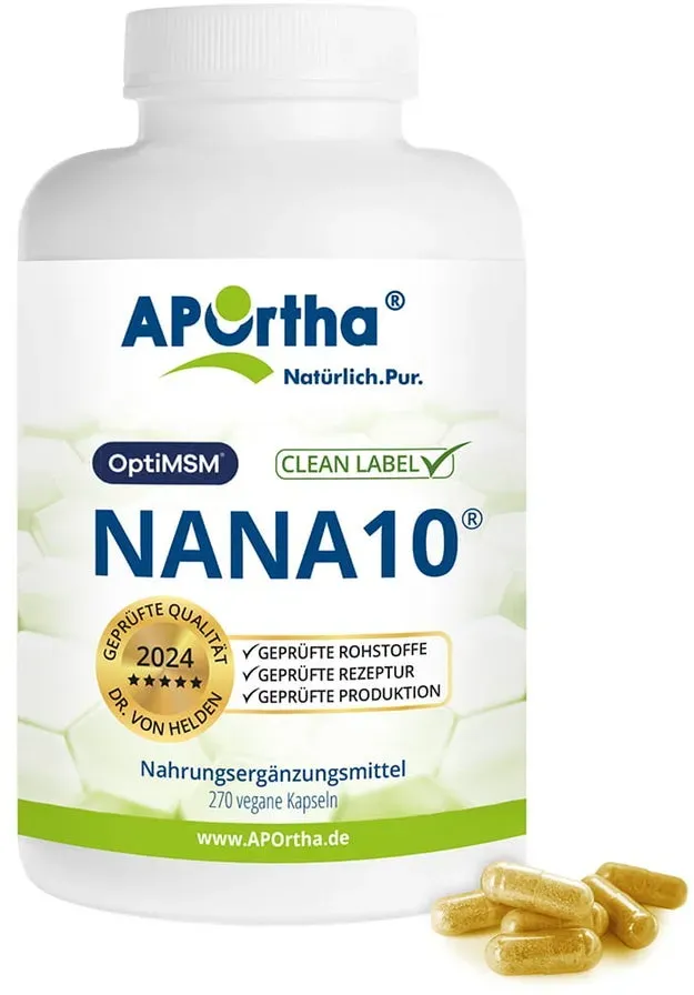 134,00 /kg - Kategorie: Arzneimittel - APOrtha - GTIN:4260329845706 - PZN:19422583 - APOrtha NANA10 - vegane Kapseln 270 St - rezeptfrei - von APOrtha Deutschland GmbH - Kapseln - 270 St - 31,49 Euro bei DocMorris Apotheke - gefunden von billiger.de Dieses Angebot für die Nana10 Kapseln ist preislich fair und eine gute Wahl. ![]() ![]() APOrtha NANA10 Kapseln